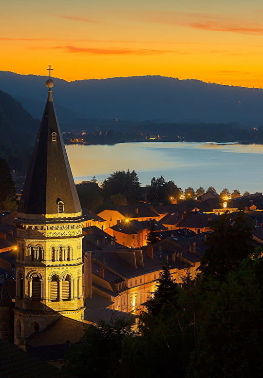 En route pour Nantua, une jolie cité blottie entre son lac et les montagnes environnantes. Une promenade en centre-ville permet de découvrir un patrimoine religieux remarquable. C’est aussi l’occasion de goûter aux spécialités locales, comme les quenelles sauce Nantua, accompagnées d’un verre de Cerdon.