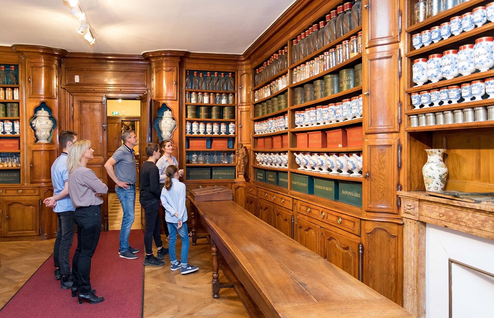 Une visite pour entrer de plain-pied dans la chimie des siècles passés : l’arrière-boutique et l’officine exposent de riches collections de faïences et de verrines dont la plupart contiennent encore plantes et substances curatives, le tout dans un bel écrin (boiseries à la charnière entre les styles Louis XV et Louis XVI). Parking sur la voirie ou sur le site du monastère de Brou à 5 minutes à pied Réservation en ligne ou à l’accueil de l’Office de tourisme obligatoire, places limitées. L’apothicairerie n’est pas accessible aux personnes en fauteuils roulants (Escaliers). Merci de votre compréhension.