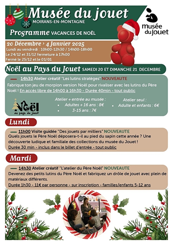 Atelier créatif "L'atelier du Père Noël" le 23 et 30 décembre de 14h30 à 16h00 au Musée du Jouet de Moirans-en-Montagne.
