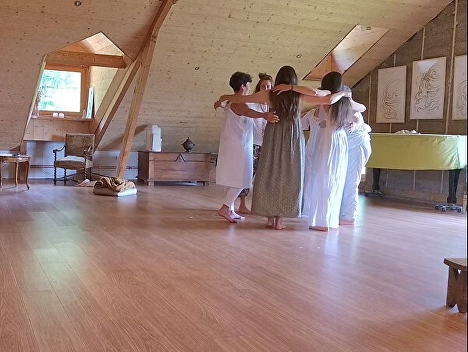 3/ Voix : naissant d'un geste de plus en plus libre, à l'écoute des besoins du corps, la voix peut naturellement s'ouvrir à son tour, en des sons inattendus et acceptés (!), puis en des mélodies improvisées.