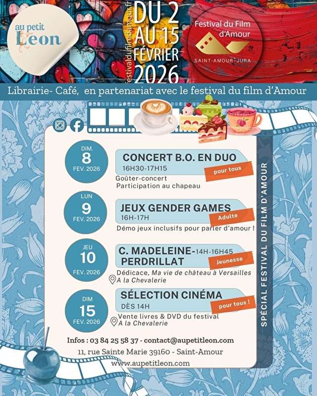 Pour vos entractes gourmands, la librairie café au petit Léon à Saint-Amour, vous accueille pendant toute la durée du festival du film d'amour.