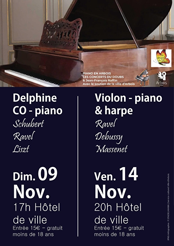 Charlotte au violon et Nathan Saluste-Bridoux au piano, Chloé Ducray à la harpe :