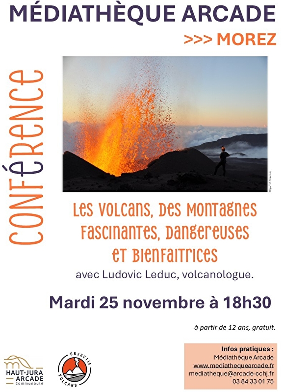 La médiathèque de Morez vous propose la conférence "Les volcans, des montagnes fascinantes, dangereuses et bienfaitrices" animée par Ludovic Leduc, volcanologue.