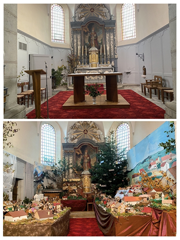 Exposition d une crèche animée tous les jours. entrée libre, pièce de 2 euros pour le mécanisme, Santons des métiers d autrefois animés, reconstitution du village en miniature, nativité animeo.