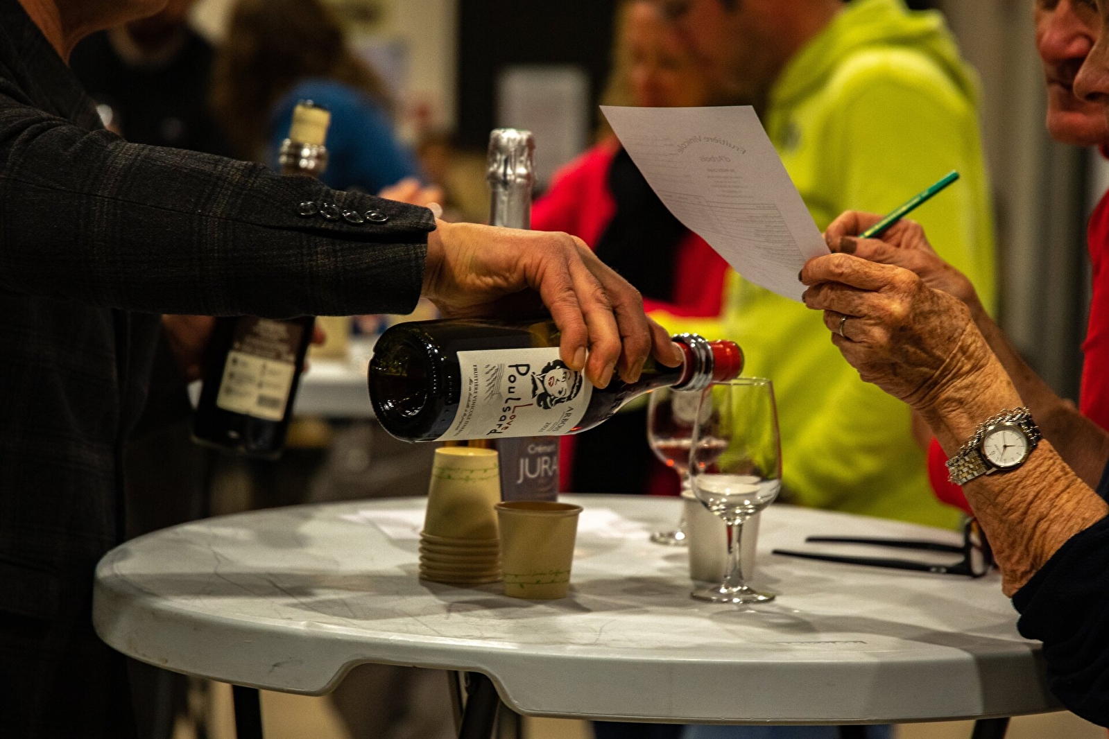 Animation dégustation des vins du Jura avec la Fruitière Vinicole d'Arbois. Présence de jeux pour les enfants et dégustation de sirops artisanaux.