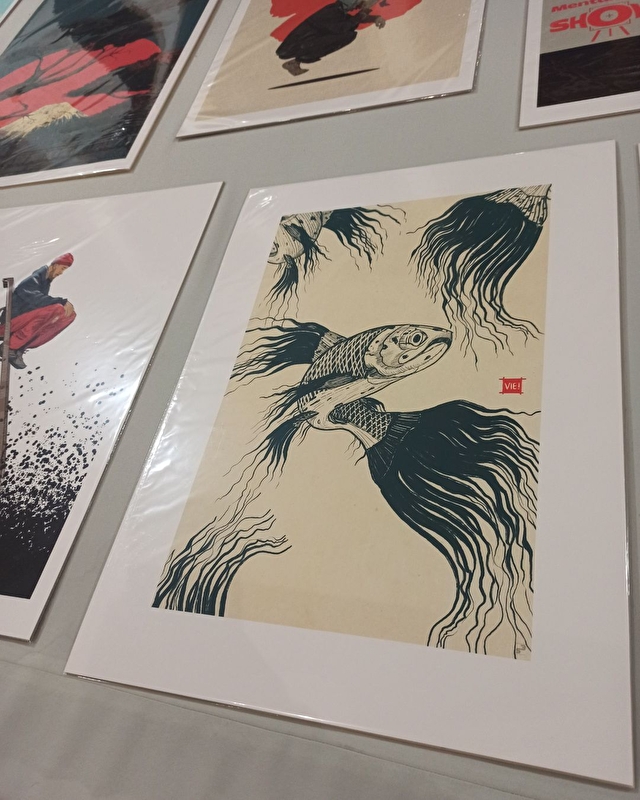 L’exposition présente principalement des œuvres réalisées à l’encre taille-douce. Habituellement destinée à l’impression, cette encre est ici appliquée directement à la main sur papier ou sur toile. Fluide et presque vivante, elle offre à l’artiste la possibilité de « dessiner » avec une grande liberté, sculptant la matière grâce à divers outils pour faire émerger textures, reliefs et volumes.