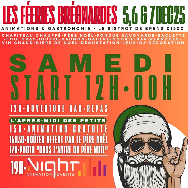 Cette année grand changement, Le Bistrot de Brens mettra en valeur la Gastronomie locale. Tout au long du week-end diverses animations musicales vous seront proposées. Chapiteau chauffé. Présence du Père Noël (possibilité de photos dans "L'Antre du Père Noël) Dégustation. Vin chaud. Bière de Noêl. Fondue savoyarde et raclette. Saumon. Huitre, foie gras, gaufres, cookies, planches.