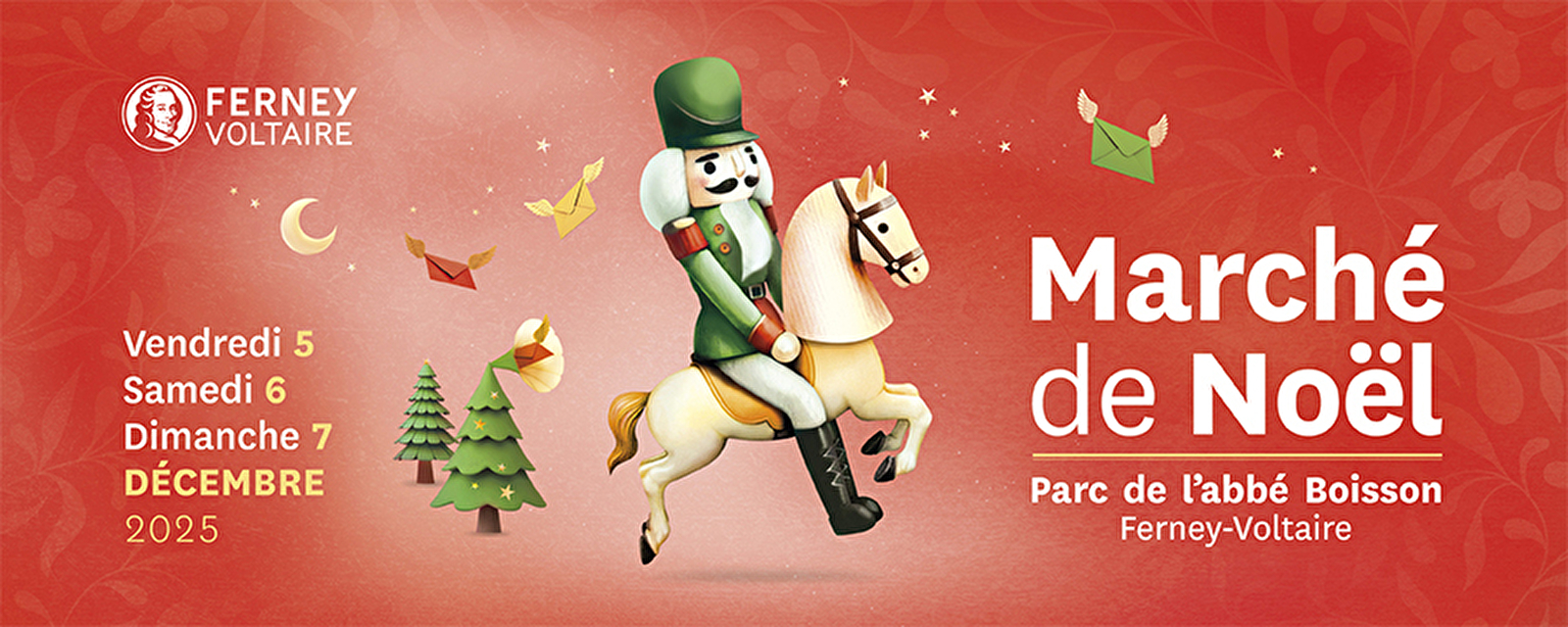 Visite du Père Noël, défilé féerique aux lampions, tours de manège, promenades en calèches et à dos d'âne... profitez en pour partager de chaleureux moments en famille. Au programme : Animations du vendredi 5 décembre De 17h à 20h : Présence du Père Noël. 17h30 : Inauguration en présence du maire de Ferney-Voltaire, suivie des chants de Noël par les classes de CP, CEl et CE2 des écoles Florian, Jean-Calas et Jean-de-La Fontaine. Direction : Clément Coulez, intervenant musique du conservatoire. 18h : Défilé aux lampions dans les rues, en présence du Père Noël et de Noël Enchanté, une parade musicale et féérique par la compagnie Les Enjoliveurs. Départ du cortège : place de la Comédie. 18h30 : Intermède musical avec Noël Enchanté par la compagnie Les Enjoliveurs. 19h : Concert de la Société musicale de Ferney-Voltaire, sous la direction de Benoît Durand. De 19h30 à 20h : Clôture en musique avec Noël Enchanté par la compagnie Les Enjoliveurs, alliant musique, chanson et art du cirque. Animations du samedi 6 décembre De 10h à 11h30 : Atelier de décoration de sablés de Noël. Dès 6 ans. De 14h à 15h30 : Atelier de réalisation de cartes de Noël, proposé par le Mouvement artistique du Pays de Gex. De 15h à 19h : Présence du Père Noël. De 16h à 17h : Atelier manuel par le service enfance de la Ville. De 16h30 à 17h30 et de 18h30 à 19h30 : Chants de Noël en live. Toute la journée : Promenades en calèche et à dos d’âne. Soirée Téléthon : samedi 6 décembre À partir de 19h : Musique à la salle du Levant. Animations du dimanche 7 décembre De 10h à 11h30 : Maquillage pour les enfants. De 14h à 15h30 : Atelier de réalisation de cartes de Noël, proposé par le Mouvement artistique du Pays de Gex. De 15h à 18h : Présence du Père Noël. De 15h à 16h et de 17h à 18h : Chants de Noël en live avec le trio Christmas Folks : Frank Sinatra, Mariah Carey, Wham ou encore Elvis Presley : des reprises pop folk des grands classiques de Noël. Toute la journée : Promenades en calèche et à dos d’âne. Lettre au Père Noël Venez déposer votre lettre au Père Noël dans la grande boîte aux lettres illuminée proche du chalet où il fait une petite pause entre deux livraisons de cadeaux ! N’oubliez pas d’indiquer votre adresse pour recevoir une réponse.