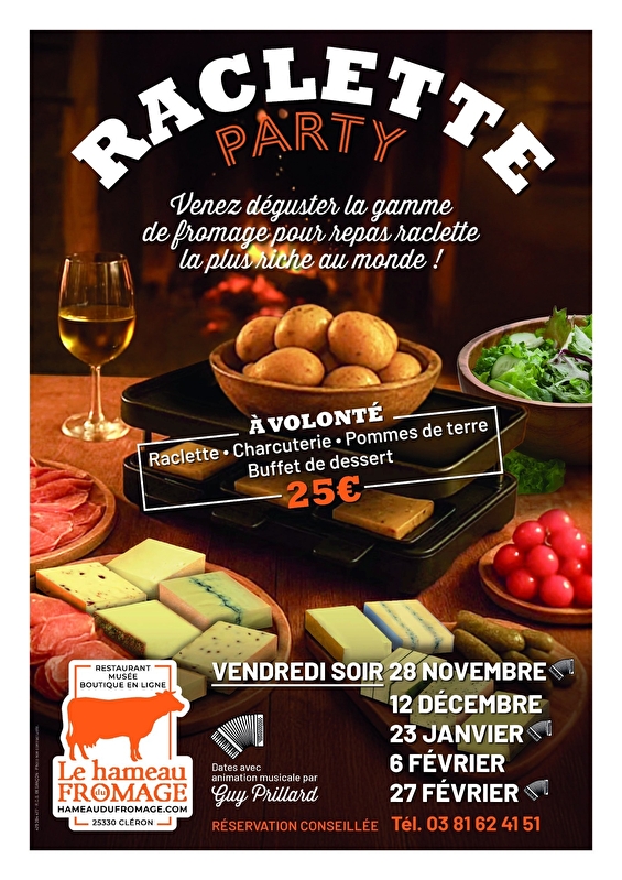 Venez passer découvrir notre riche gamme de fromages à raclette autours d'une formule tout à volonté ! Soirée animée par Guy Prillard.