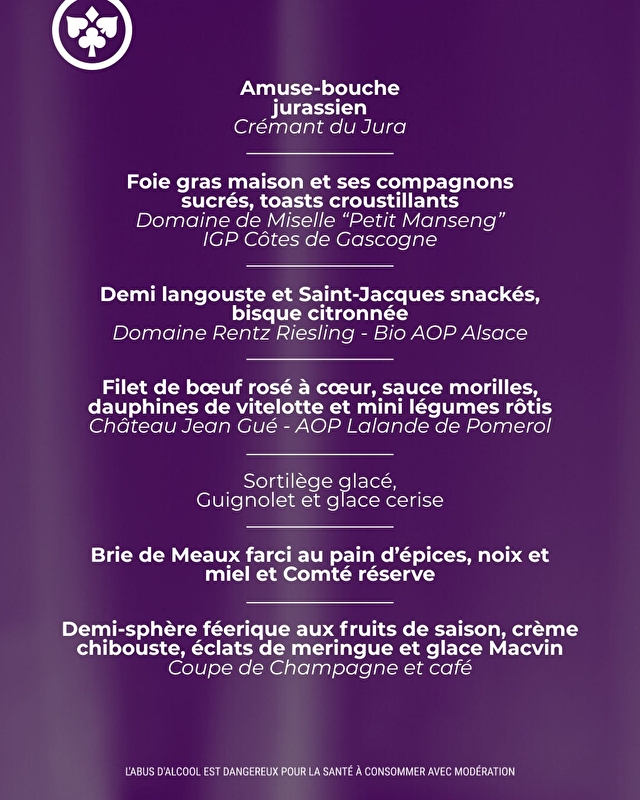 Un menu d’exception avec accords mets & vins vous accompagnera tout au long de ce voyage féérique.