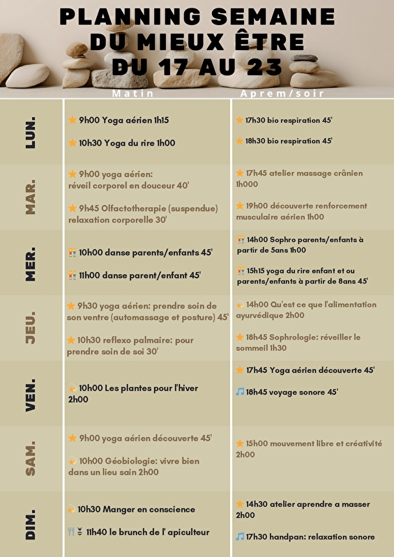 Née de l’envie de vous offrir, en un seul lieu, la découverte de différentes approches qui vous veulent du bien, cette semaine vous invite à explorer, expérimenter et prendre soin de vous, mais surtout à oser.