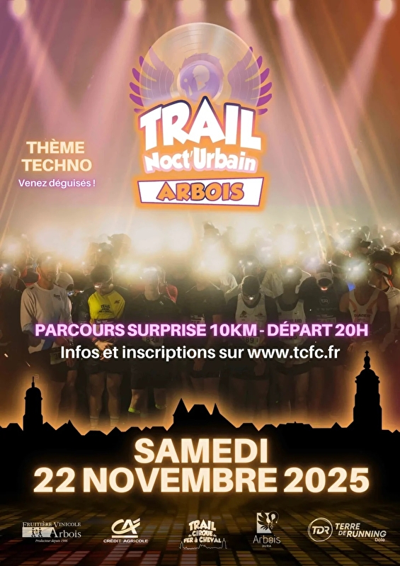L’association « Trail du Cirque du Fer à Cheval » et la Ville d’Arbois vous proposent un trail nocturne et urbain dans les rues de notre superbe citée vigneronne jurassienne.