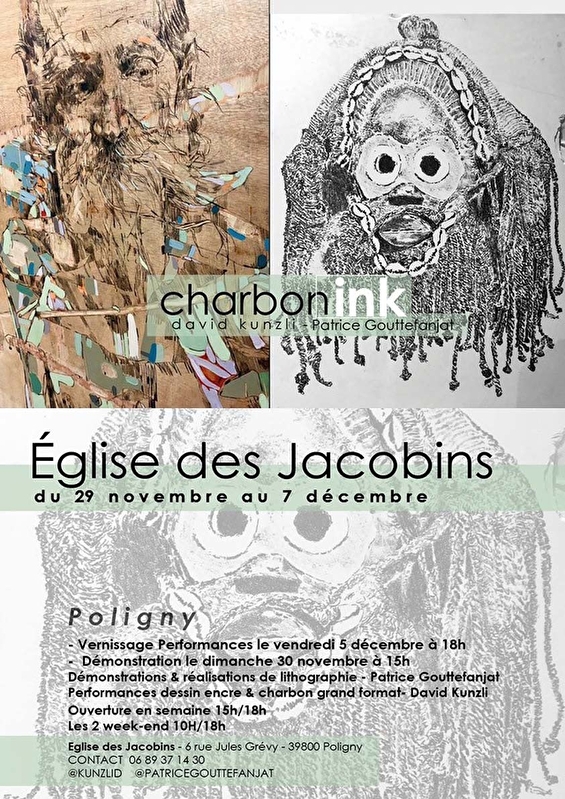 Démonstrations et réalisations de lithographie par Patrice GOUTTEFANJAT. Performances dessin encre et charbon grand format par David KUNZLI.