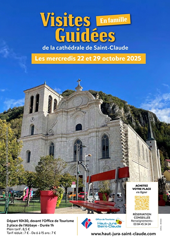 - sur place dans l'un de nos Offices de Tourisme (Lajoux, La Pesse et Saint-Claude).Réservation conseillée, nombre de places limitées.Durée : 1hLieu de départ : 3 place de l'Abbaye 39200 Saint-ClaudeMerci de vous présenter 10 min avant le début de la visite.