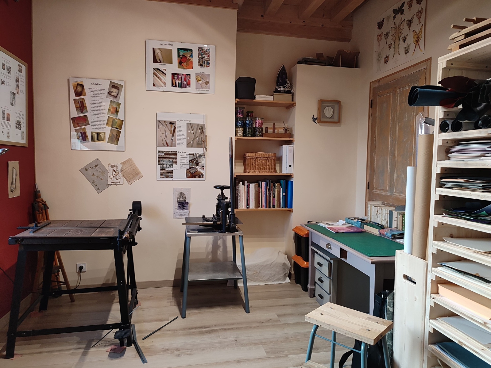 Edith propose des stages destinés aux adultes comme aux enfants, permettant de découvrir les gestes fondamentaux de la reliure artisanale.