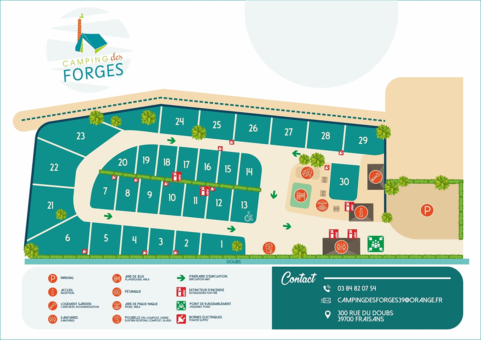 Camping calme et familial de 30 emplacements, au bord du Doubs et de la forêt de Chaux, entre Dole et Besançon, non loin de l'EuroVélo6. Situé au centre du village dans lequel vous trouverez supermarché, bureau de tabac, pharmacie, garage, boulangerie, pizzérias et bien d'autres encore.
