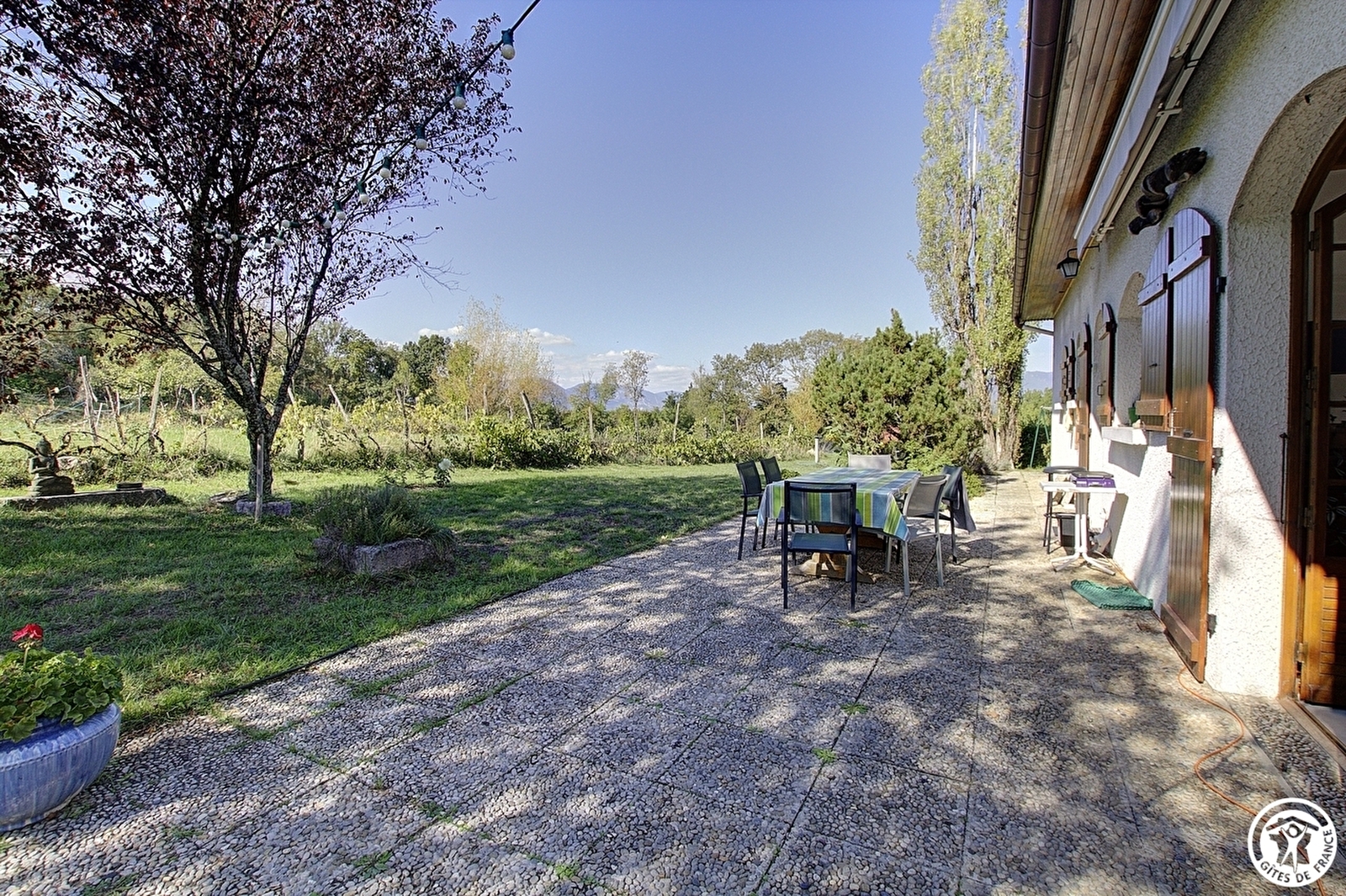A 4 km du centre de Belley, Pascal et Brigitte, vous ouvrent les portes de leur maison Bugiste et vous proposent deux chambres situées à l'étage. Depuis le hall, vous accédez aux chambres par un escalier en bois. La première chambre pour 3 personnes est équipée d'un lit en 160 *200 et un en 90*190, la deuxième chambre, mitoyenne à la première, est composée d'un lit double en 160*200. Les deux chambres sont équipées chacune d'un espace bureau et d'une salle d'eau (avec WC) privative, située sur le même palier mais non attenante à la chambre.Des peignoirs sont proposés pour plus de confort. Cet étage comprend les deux chambres d'hôtes, ainsi qu'un espace privé aux propriétaires (bureau et une chambre réservée à la famille). Au même niveau, un coin détente avec télévision et plateau de courtoisie, destinés aux hôtes. Les petits déjeuners et la table d'hôtes ou paniers repas (sur réservation), sont pris sur une des trois terrasses lors des beaux jours ou dans l'espace repas. Le temps d'une halte ou d'un séjour prolongé, vous pouvez vous ressourcer dans le grand parc pour profiter du calme des lieux. Un parking pour deux voitures (non sécurisé) est réservé devant la maison. Pour les amateurs de deux roues, un local fermé pour vélos et ou motos. A 500 mètres, la forêt de Rothone vous propose de belles balades. Vous pouvez également découvrir Belley, région de terroir avec ses chapelles, ses lavoirs, ses fours à pains et ses domaines viticoles. Cette ancienne capitale du Bugey, est idéalement entourée de lacs, rivières, montagne, qui feront le bonheur des amoureux de la nature. Laissez vous transporter vers le massif du Grand Colombier et la Via Rhôna pour de belles randonnées, pêcher, et découvrir les produits du terroir. Limitrophe Savoie avec lac du Bourget, Aix les Bains, Chambéry.