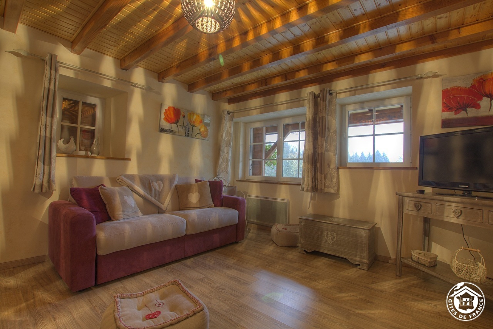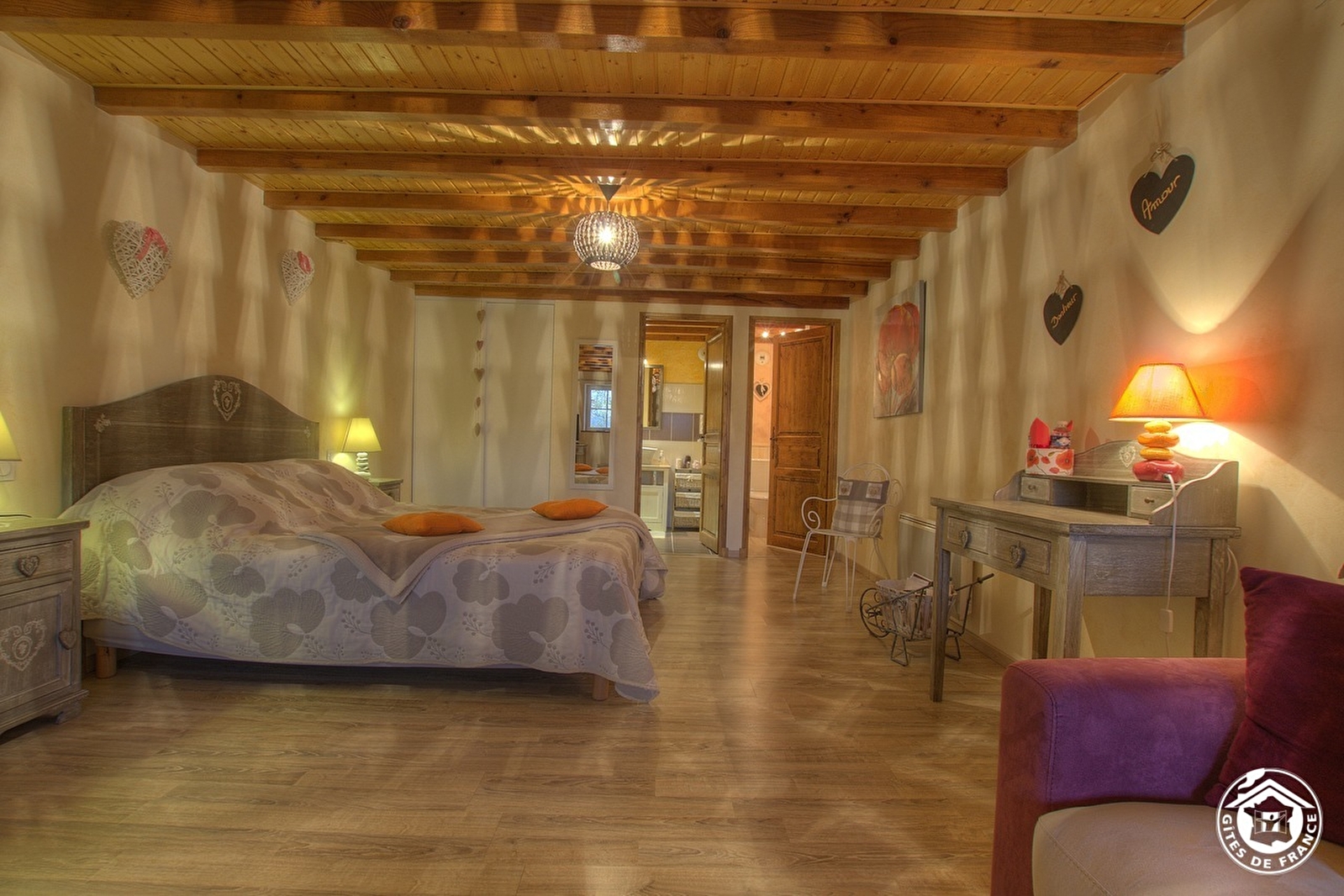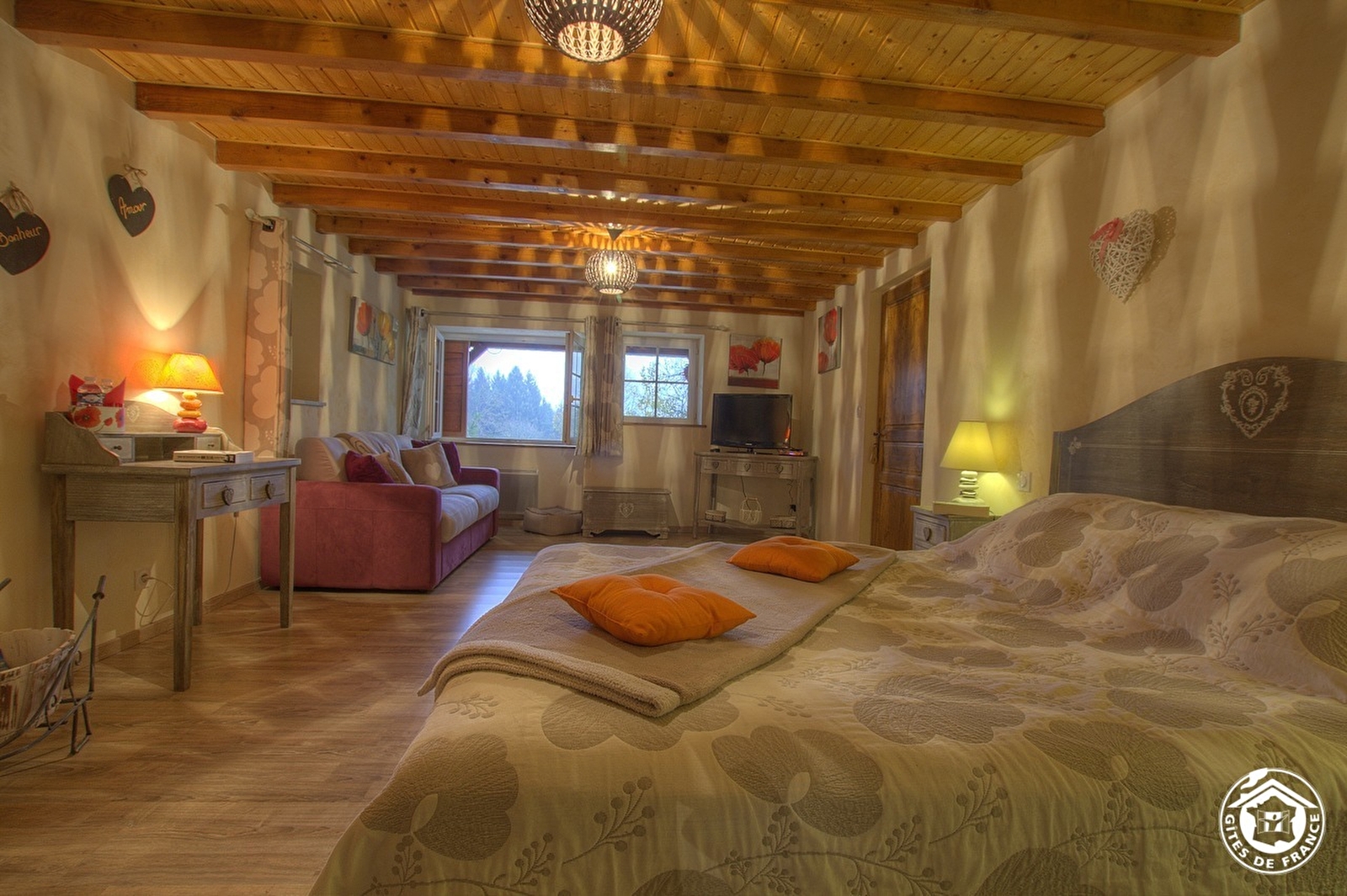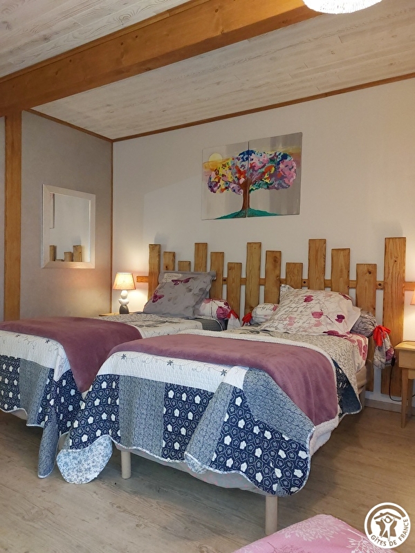 A 750 m d'altitude., à proximité du Plateau du Retord, Patricia vous ouvre ses 5 chambres situées dans une ancienne ferme du XIXème siècle, au calme, rénovée avec goût. Au rez-de-chaussée la chambre Romantique peut accueillir 4 personnes (1 lit 160x200 et canapé convertible de 140x190), une salle d'eau et WC privatifs. Au premier étage 4 chambres : Fidji (2 lits 90 ou 1 lit de 180), Louison (1 lits de 160x190 et 1 lit bébé et possibilité d'un lit pliant), Douceur (2 lits 90x200 ou 1 lit de 180) et Chaleur (1 lit de 160x200) . Chaque chambre dispose d'une salle d'eau et WC privatifs . Au rez de chaussée une cuisine est à la disposition des hôtes. Un parking, et un grand terrain de 3 hectares. Une halte reposante pour découvrir la route du Plateau du Retord, haut lieu de randonnées, VTT, ski de fond et ski de piste et toute autre activité nature. Centre de balnéothérapie à 20 km. Balades à dos d'ânes à Brénod. Parapente, accrobranche...
