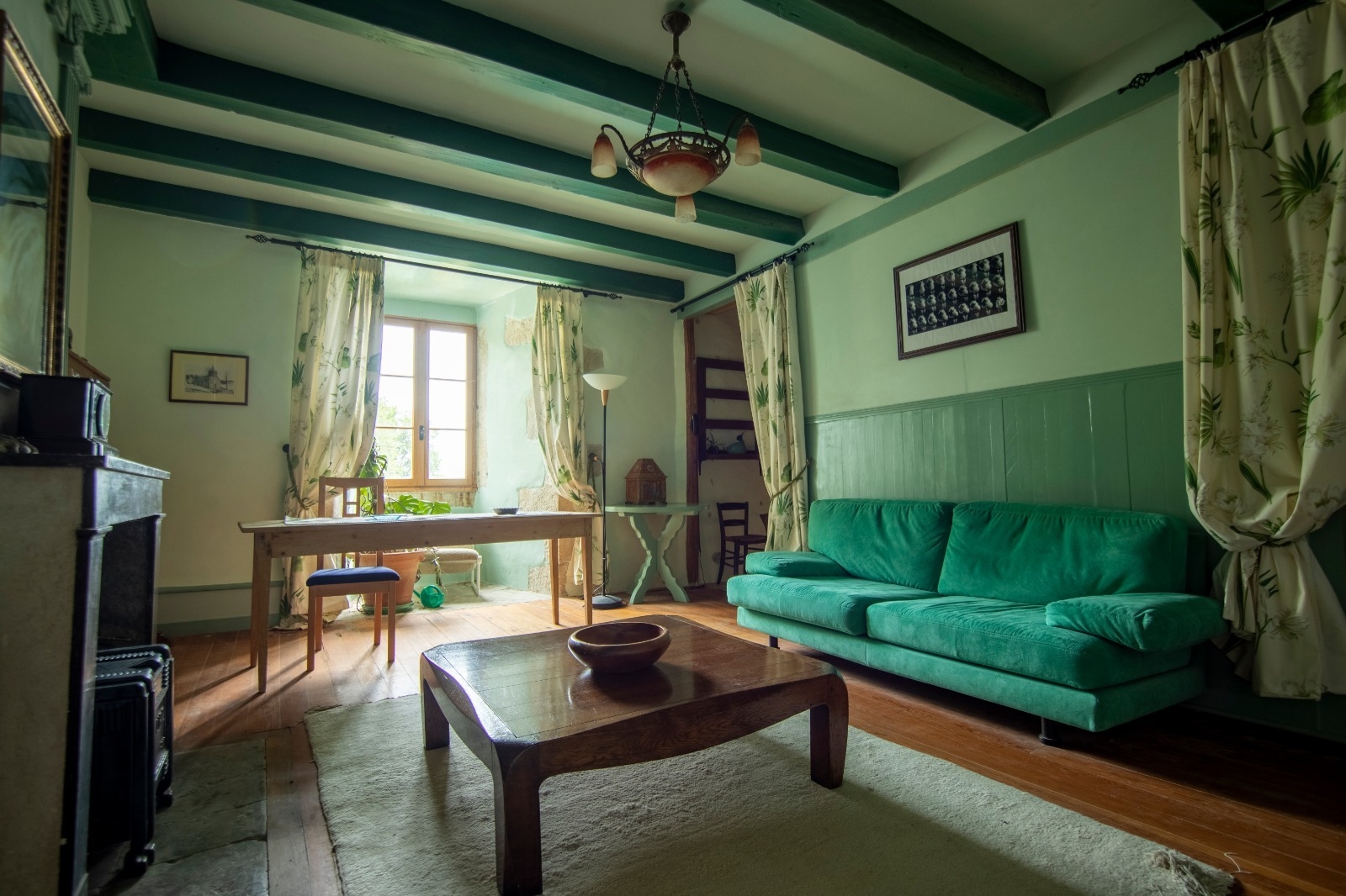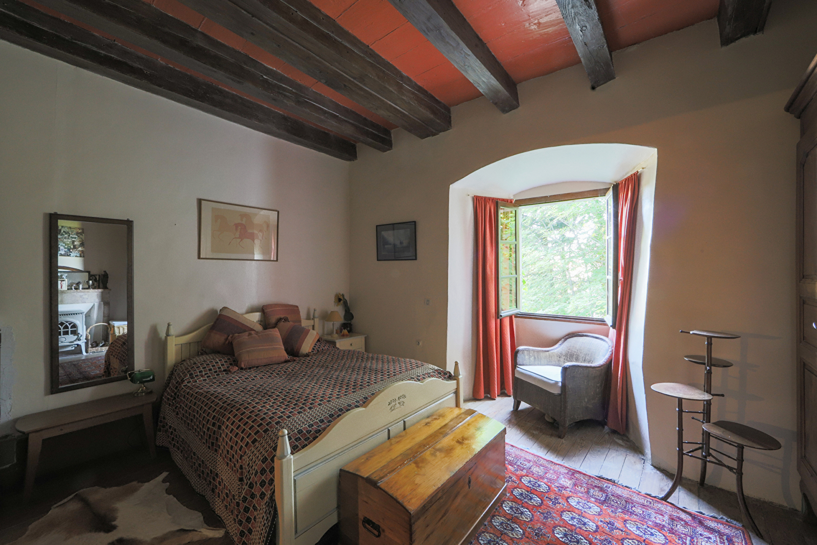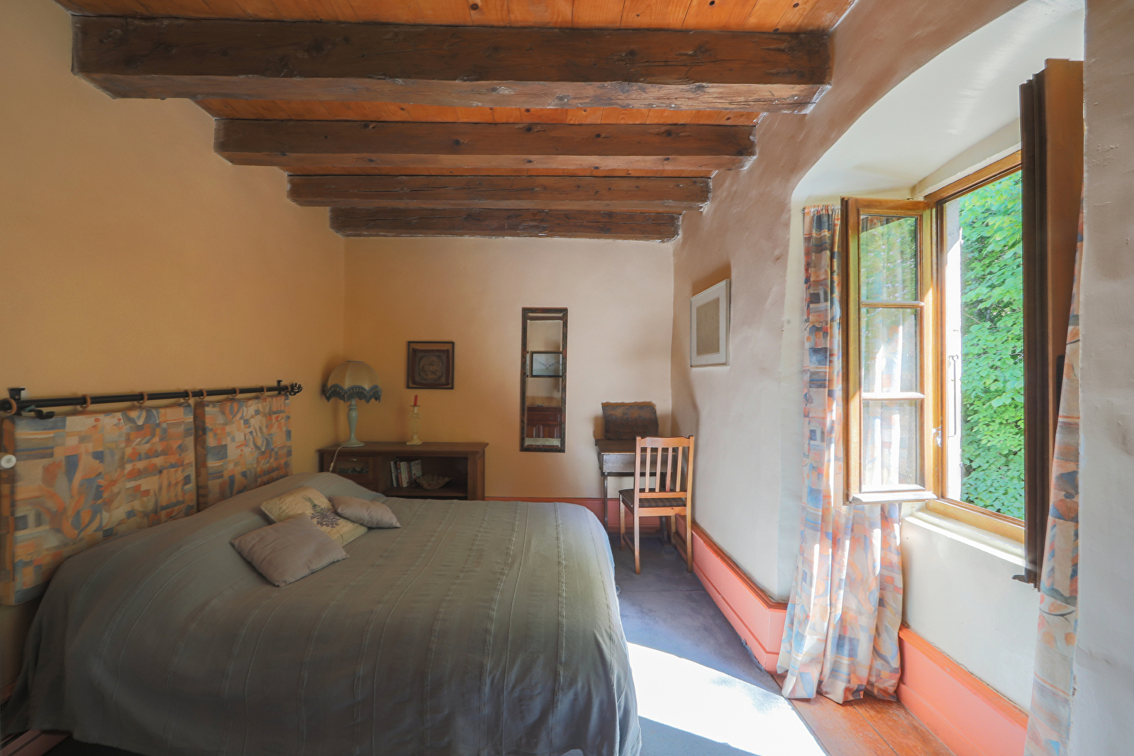 - La Chambre Verte: une vaste chambre avec lit de 160cm et un salon privatif et ensoleillé. (Notez les trois marches pour y accéder.)