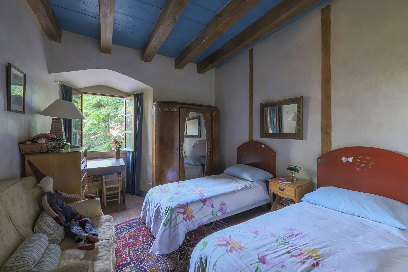 Trois marches pour accéder à chacune de ces deux chambres, qui donnent sur la façade nord et partagent une même salle de bains.