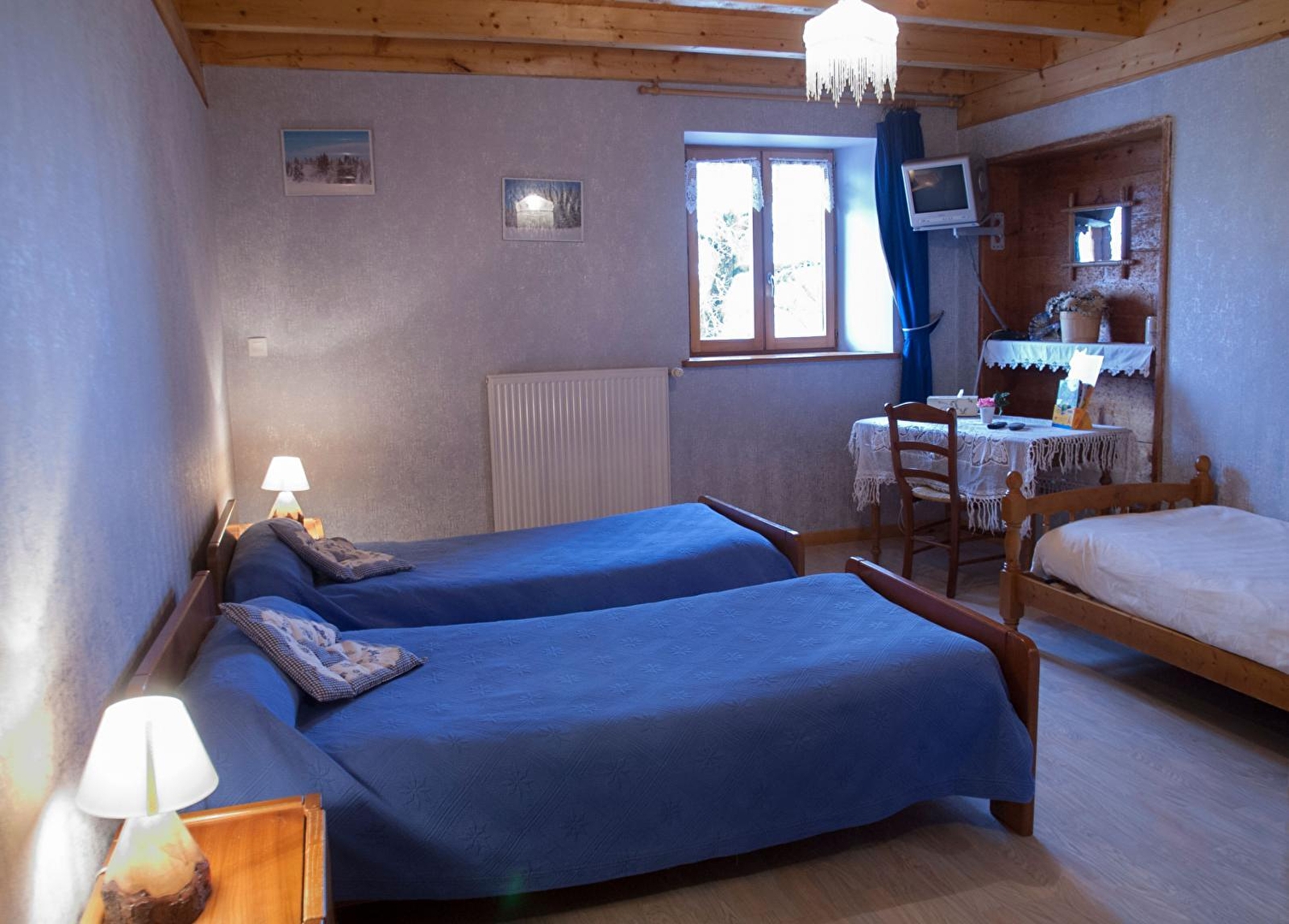 Au coeur du Parc Naturel Régional du Haut-Jura, 2 chambres pour 2 personnes (lits 2 pl: de 140 et de 160) et 1 chambre pour 2 à 3 pers (3 lits 1pl de 90), chacune étant équipée de sanitaires privés et TV sont aménagées dans une ferme comtoise de 1802. Cuisine à disposition des hôtes, cour, parking privé, salon de jardin avec splendide vue sur les Montagnes du Jura. Au départ de nombreuses pistes de skis de fond et randonnées, à deux pas de la région des lacs et cascades.