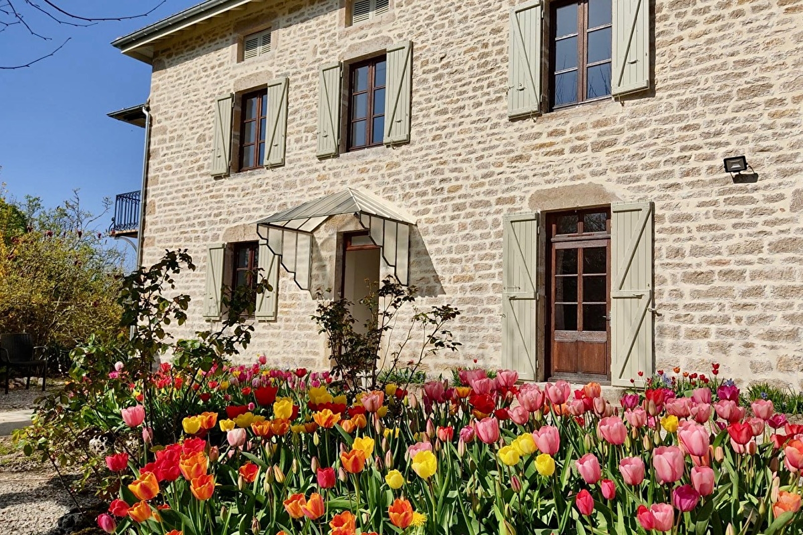 Bienvenue à vous qui recherchez un séjour de charme dans un cadre authentique, chargé d'histoire...et d'histoires ! Située à la croisée de 3 départements (l’Ain, le Jura et la Saône et Loire) dont les richesses naturelles, culturelles, historiques et gastronomiques en font un haut lieu du tourisme national, La MAGOGE est une ancienne maison de maître du XIX ème Siècle Avec ses 27 m2, "L'Albarine" est la plus grande des 4 chambres proposées, l'une des plus lumineuses également. Le côté nuit se compose d'un lit en 160 cm complété par un espace penderie et rangements et d'une console faisant office de secrétaire ou de coiffeuse selon votre souhait du jour. Le côté jour comprend un coin détente dans le cadre duquel vous pourrez vous amuser à déchiffrer une partition de musique ou lire un roman, tout en sirotant un bon café ou un thé. La salle de bain adjacente dispose d'une douche fermée et d'un wc suspendu, à l'instar des autres chambres. Les prestations incluent : une cafetière à capsules, une bouilloire ainsi qu'un assortiment de thés, infusions et cafés des serviettes de toilettes, un lot de produits d'accueil et des chaussons d'intérieurs,un parapluie et 2 serviettes de plage pour la piscine, le petit-déjeunerl'accès à la piscine chauffée de 9h30 à 20h00 (en saison)OPTIONS : Table d'hôtes : 30,00€/ personne (sans vin) et 35,00€/personne (2 verres de vin inclus) Accueil VIP : + 19,00€ (base 2 personnes) avec 1 bouteille de Crémant du Jura, des amuses-bouches et 1 bouquet de fleurs