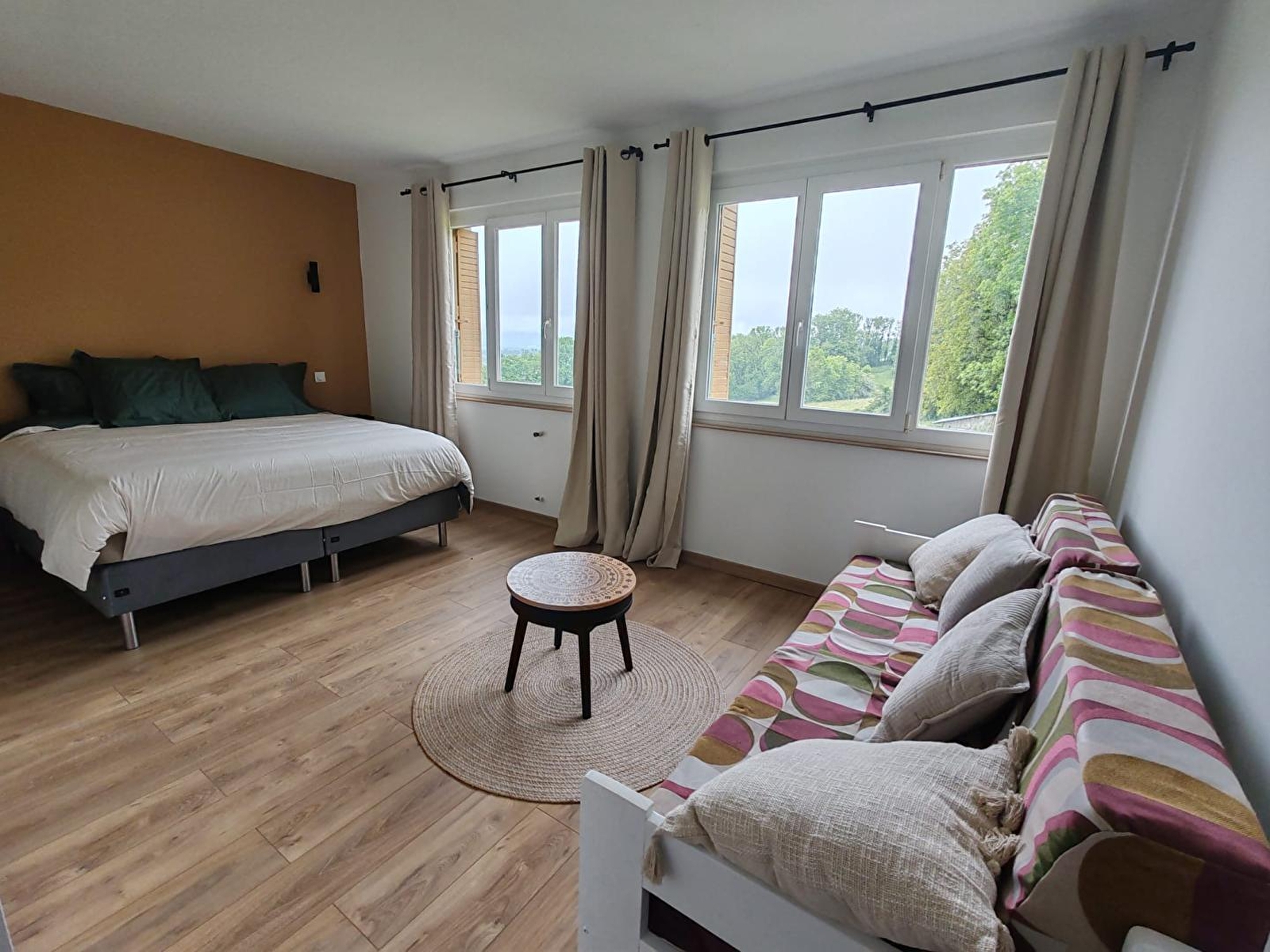 Bienvenue à l'Aubier! Dans cette grande maison qui à terme vous accueillera dans 4 chambres totalement rénovées. A ce jour, 3 chambres situées au 1er étage : Savane, Tropical et Oasis vous offriront tout le confort nécessaire : Chambre Savane pour 3 personnes : 2 lits jumelables 90*200 et un lit simple 80*190, TV, une salle d'eau avec douche et un WC indépendant. Chambre Tropical pour 4 personnes : 2 lits gigognes 80*190 et un lit double 160*200, TV et salle d'eau avec douche et WC Chambre Oasis pour 3 personnes : 1 lit 80*190 et un lit double 160*200, TV et salle d'eau avec douche et WC Un grand séjour avec salon exclusivement réservé aux hôtes et salle de petit déjeuner vous permettra de vous détendre au coin du feu, de profiter de la très belle vue sur les Monts Jura et le Mont-Blanc et surtout de déguster la cuisine du monde de Roukayatou : jurassienne, africaine, indienne, turque et thaïlandaise. Côté extérieur, balcon aménagé avec salon de jardin et grand terrain. Saint-Maur est idéalement situé : à10 mns de Lons le Saunier et 15 mns de la région des lacs et de la plage de Surchauffant (lac de Vouglans)