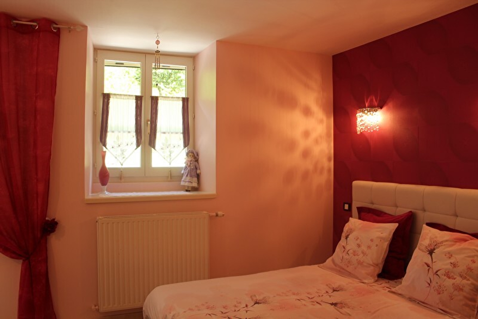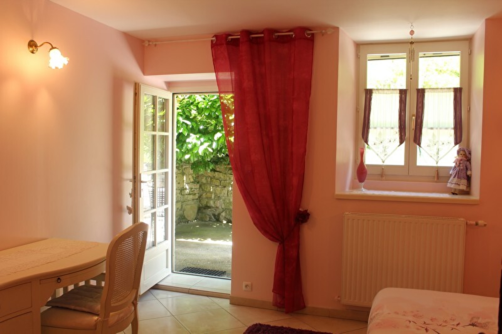 En plein coeur du vignoble jurassien, dans l'un des plus beaux villages de France abritant 4 belvédères, une grotte, une cascade et une abbaye impériale, a seulement quelques minutes de Château-Chalon et de la ville thermale de Lons le Saunier, Nathalie vous accueille dans ses 2 chambres aménagées à l'étage de sa maison, chacune avec sanitaires privés. La première chambre "L'Hymne à l'amour", pour 2 personnes, bénéficie d'une télévision écran plat. La seconde chambre "La vie en rose" a comme petit plus une terrasse privative avec salon de jardin. Cette maison est non fumeur, et les arrivée ne sont possibles qu'à partir de 17h. Prêt de vélos adultes sur demande. Table d'hôtes sur réservation : 30 euros (vin et boissons en plus). Garage pour motos et vélos à disposition des hôtes.
