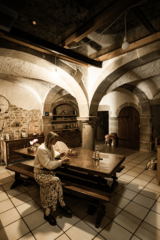 La table d'Hôtes régionale vous est proposée le vendredi et samedi soir sur réservation (sauf en juillet et août), limité à six personnes. A partir de 19h30, l'apéritif est servi dans la cave sous forme de dégustation de vins du Jura. Si un vin vous séduit vous pourrez vous l'offrir.