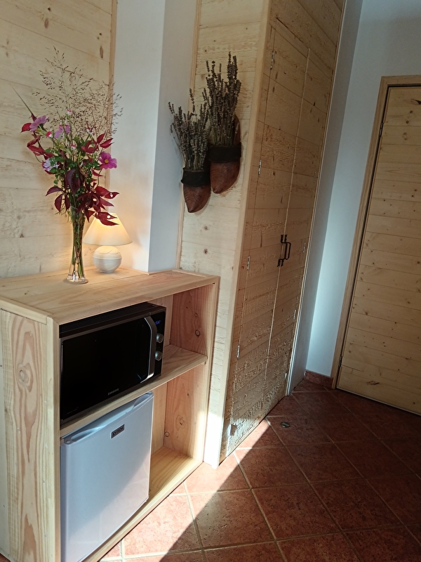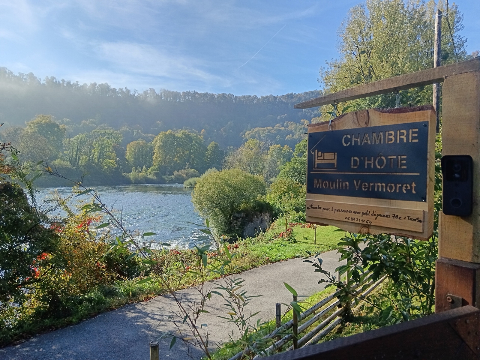 La chambre côté jardin, indépendante par une entrée privée, dispose de tout le confort nécessaire : salle de bain, WC, micro-ondes, réfrigérateur, une jolie terrasse avec vue imprenable sur le Doubs ainsi un accès privilégié au bord de la rivière.