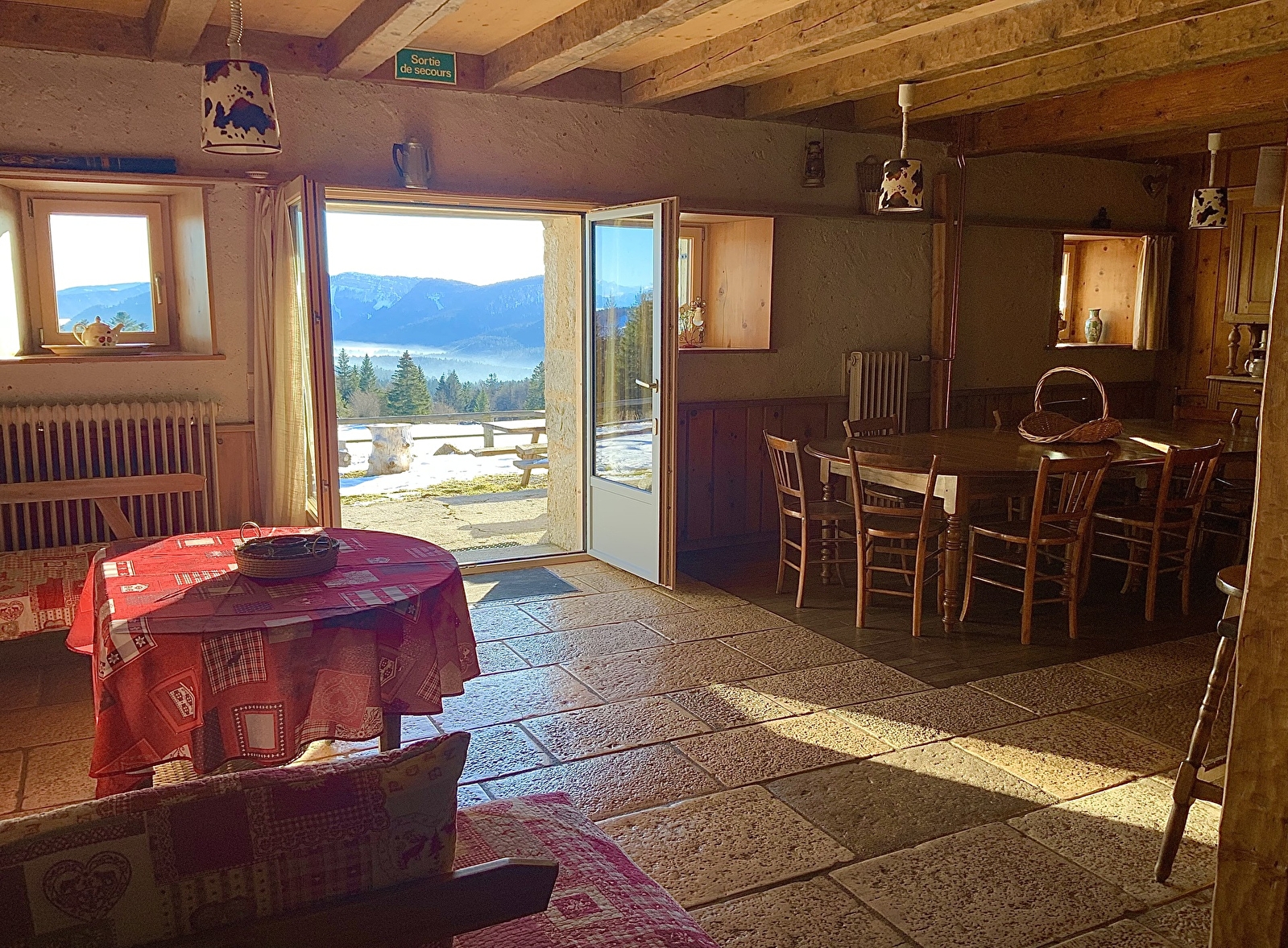 Là-haut sur la montagne du Jura franco-suisse, en pleine nature, grand chalet d'alpage joliment rénové pour 8 à 20 personnes.
