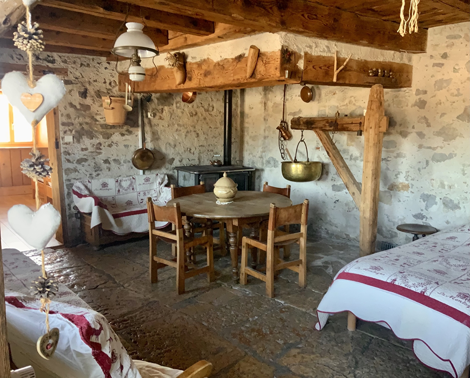 Le + : sauna au feu de bois à votre disposition pour la détente et à l’extérieur un bac d’eau froide ou neige. Terrasses avec vue, braseros, grandes tables, terrains de jeux, pétanque, volley, balançoire.…