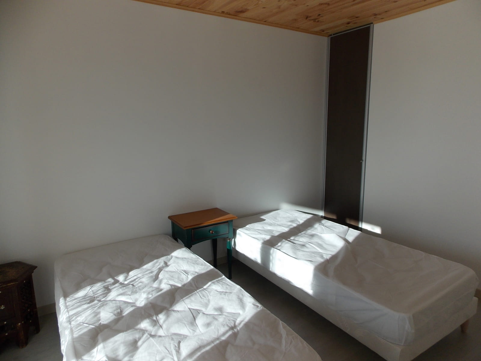 A l'étage, trois chambres (1 lit de 140, 2 lits de 90, 4 lits de 90 dont 2 lits superposés), 2 salles d'eau dont une avec WC intégré.