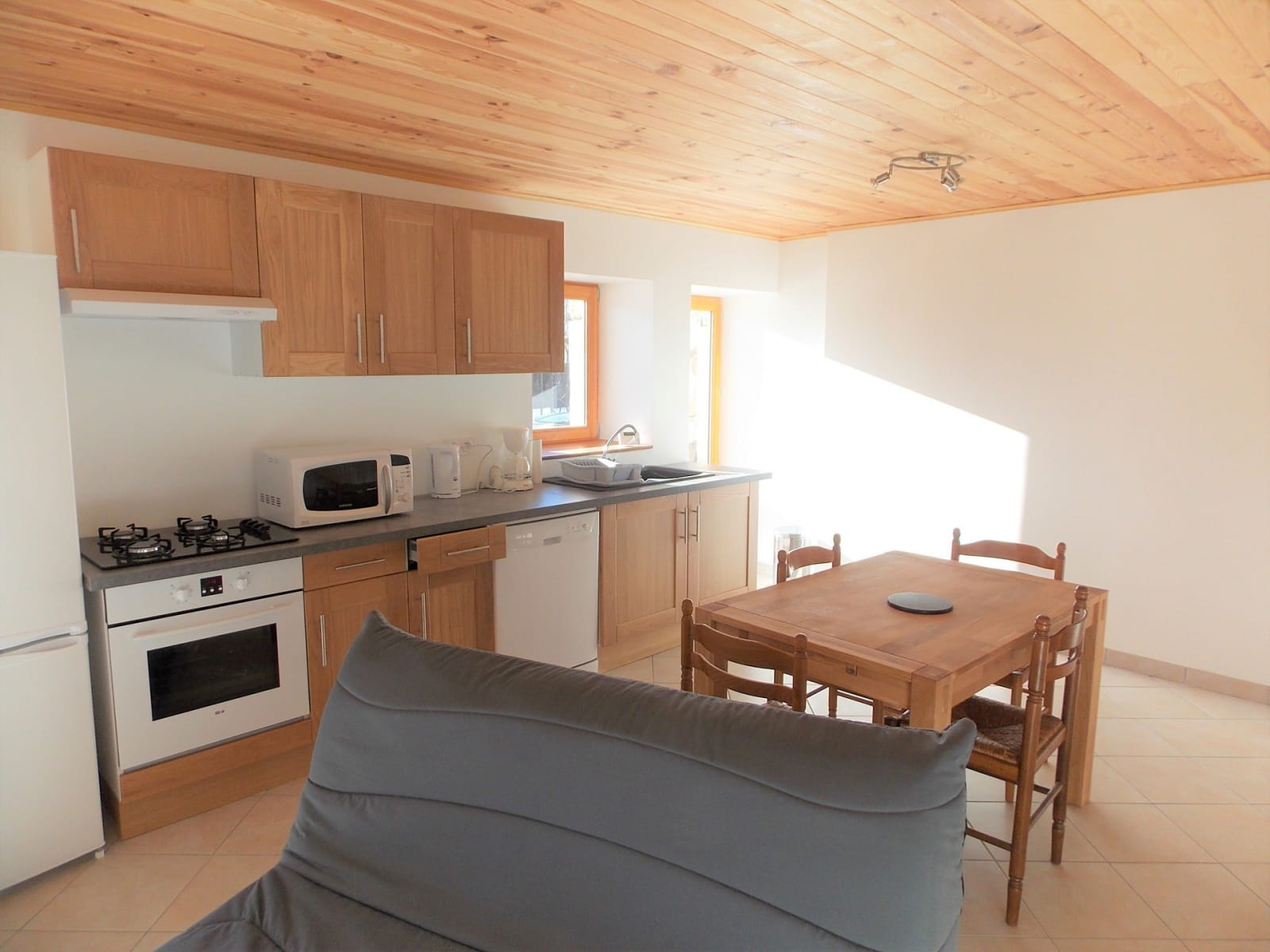 Deux entrées indépendantes, avec un premier gîte comprenant au RDC une cuisine ouverte sur séjour, wc. A l'étage, deux chambres (2 lits de 90 et 1 de 140), salle d'eau, wc.