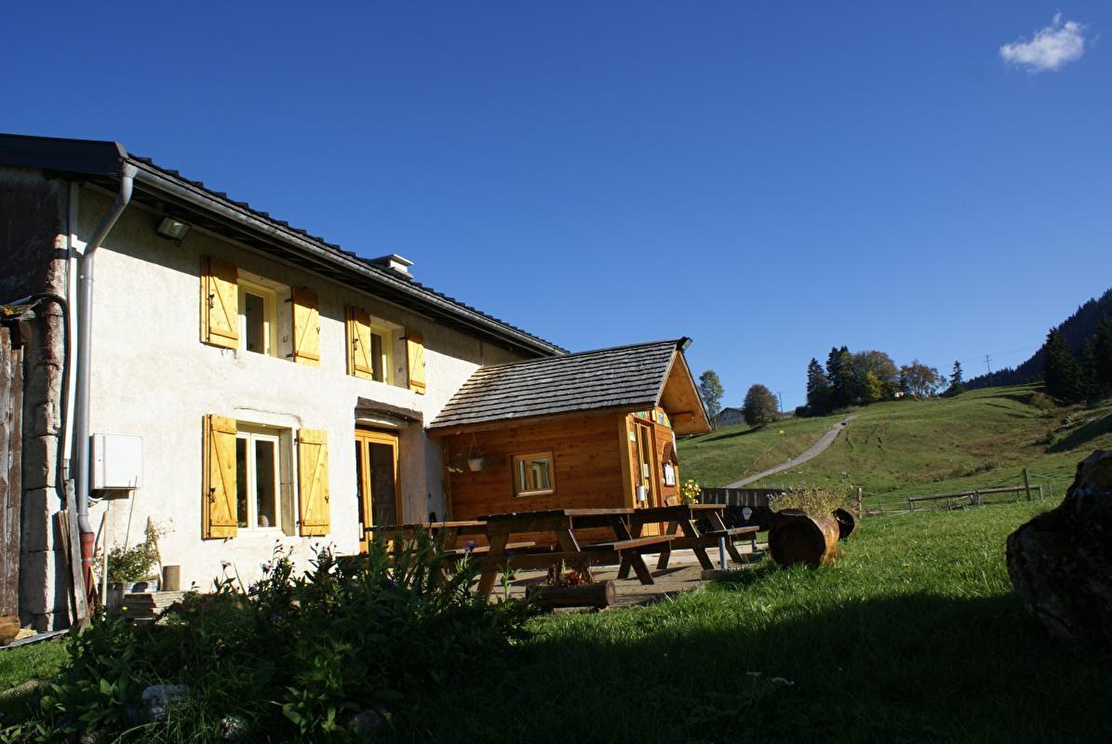 Ancienne et grande ferme rénovée en totalité et situé au coeur d'une nature authentique et préservée, dans laquelle sont aménagées 8 chambres de 2,3,4 et 5 pl, 1 dortoir 9 places, 4 douches, 4 WC, une grande salle commune avec coin salon et cheminée,bibliothèque, jardin, parking l'hiver(à 400m). Sur les tracés de la GTJ ski de fond, raquettes et GTJ équestre. GTJ VTT à proximité, nombreux circuits VTT, GR5, GR9. Prêt de cartes et topo-guides pour vos randos au départ du gîte. Patinoire et école nationale de ski de fond à Prémanon. Relais étape du Grand Huit, accueil des chevaux en pré. Animaux acceptés l'été uniquement. Tarifs réduits pour les groupes et les enfants de - de 10 ans. Tente trappeur de 3 lits, en formule dortoir (vous apportez vos draps) ou en formule chambre (les draps sont fournis) Location du gîte en gestion libre exemple du samedi 14h au dimanche 14h 800€ hors couchage et forfait ménage. Les animaux sont acceptés, sauf l'hiver, pas de supplément, pas en dortoirs
