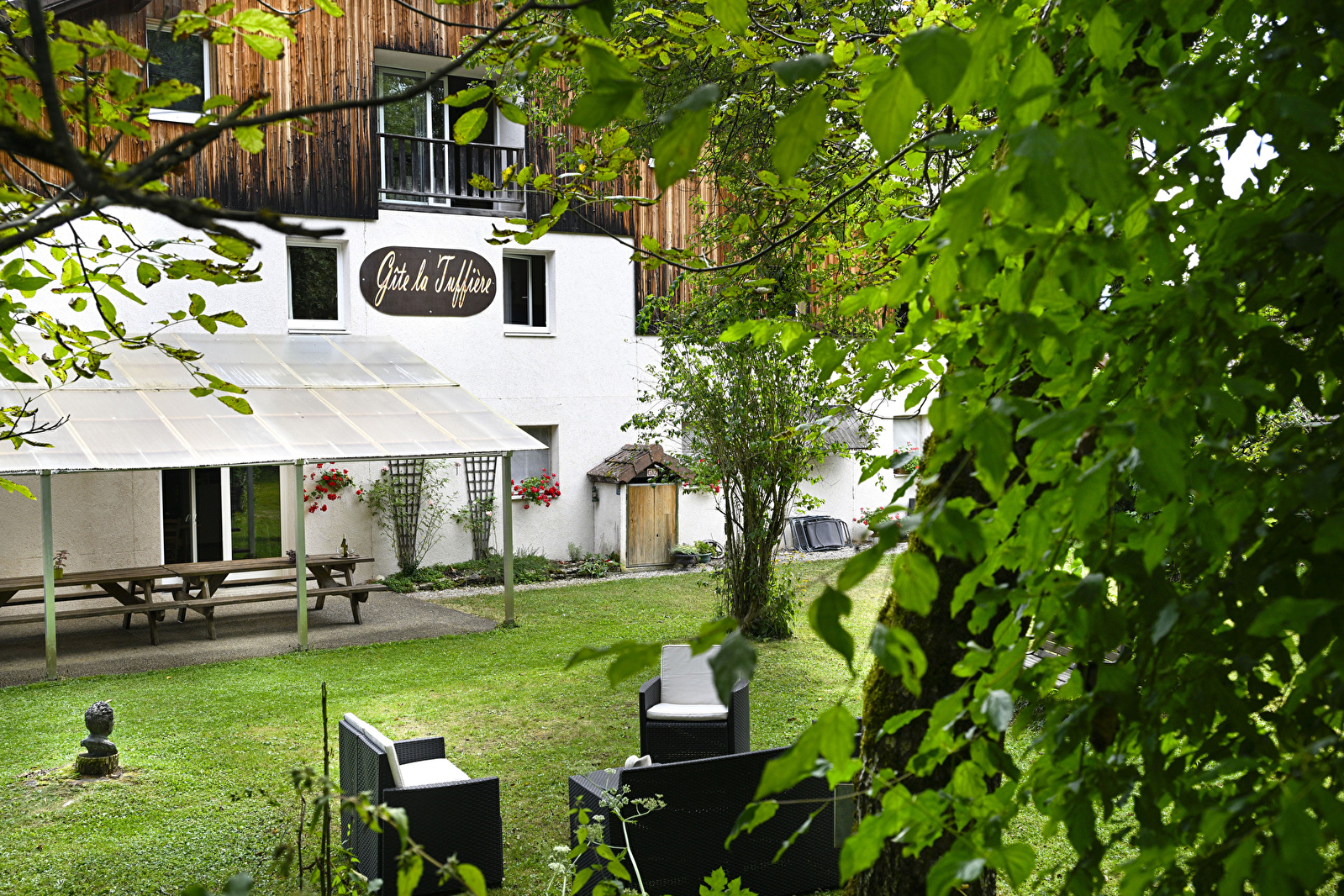 La Tuffière, située sur les sentiers de randonnée. Grand parc arboré, grande terrasse couverte, terrain de pétanque et volley. Un havre de paix à 200m de la Loue pour les pêcheurs et des routes sinueuses pour les motards. Possibilité d'organiser fêtes et anniversaires. Hébergement de 10 chambres équipées chacune de salle d'eau et toilettes. Cuisine régionale maison et variée. Séjour à la carte.