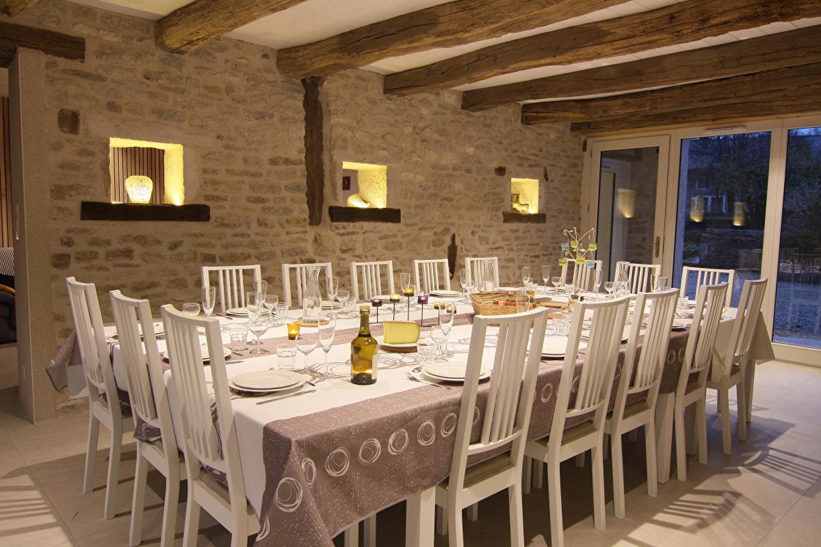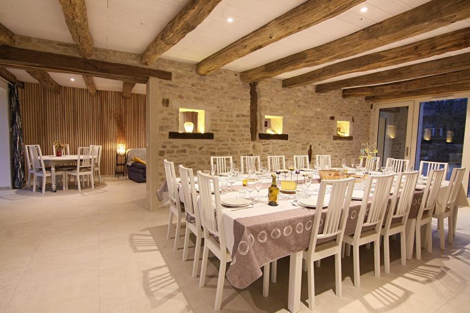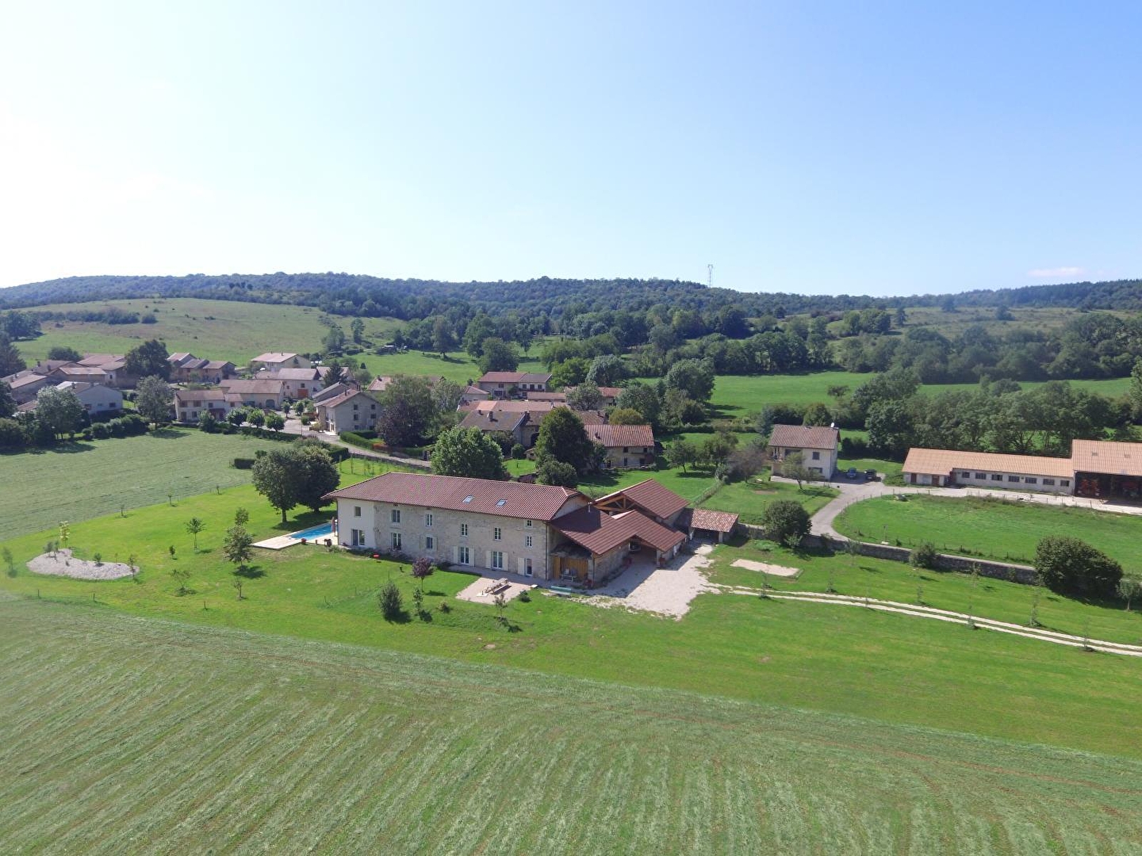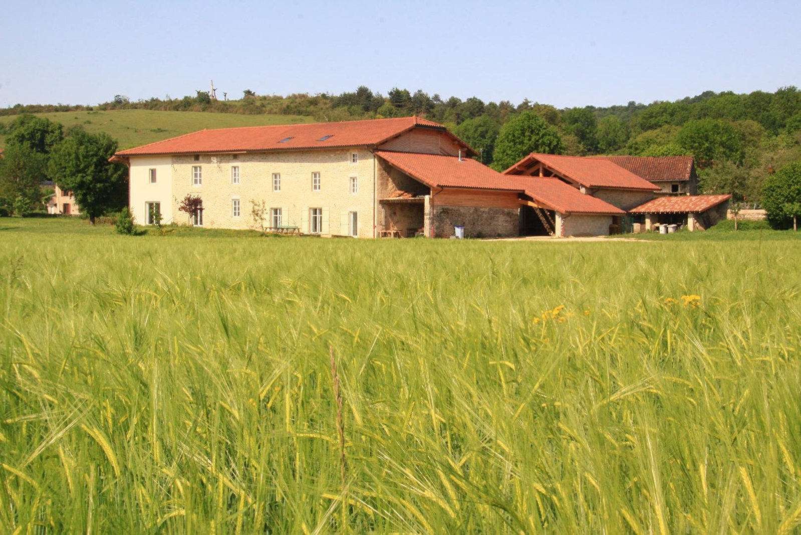 Au coeur de la campagne, en zone Natura 2000, cette ancienne ferme et relais de chasse entièrement restaurés dans le respect de l'architecture locale du Jura méridional vous propose un hébergement composé de 7 chambres toutes équipées de sanitaires privatifs. Aménagé sur trois niveaux vous pourrez disposer au rez de chaussée d'un espace détente avec un beau piano Gaveau 1/4 de queue (jouable bien sûr..) d'un vaste séjour et d'une cuisine équipée. Terrasses, préau couvert, cour intérieure, barbecue et salon de jardin vous ferons apprécier les espaces extérieurs. Vous pourrez également découvrir le savoir-faire local de la transformation du lait en Comté sur la ferme bio des propriétaires. De nombreuses animations, et idées de visites vous seront proposées. Service motard: roadbooks fournis avec conseils, voire accompagnement adapté à chaque groupe, conseils restaus/arrêts sur le circuit.. Pour les tarifs des week-ends fériés se renseigner auprès du propriétaire.