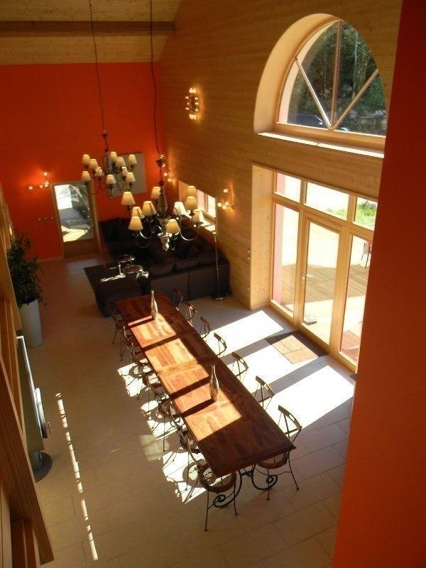 Bienvenue au Marlaya, un gîte de groupe grande capacité de 15 personnes au cœur de la région des lacs, accessible aux personnes à mobilité réduite qui vous enchantera ! Le Gite est situé à deux pas du lac de Vouglans . L'accès au gîte se fait de plain-pied, s'ouvrant sur un large espace commun cuisine-salon ouvert. Au rez de chaussée se trouve une chambre triple (3 couchages) avec la possibilité d'installer des lits médicalisés, une salle de bain et des toilettes adaptées, destinées aux personnes à mobilité réduite. A l'étage, une grande mezzanine permet 5 couchages avec des paravents pour créer deux espaces "Nuit" différents et dessert deux chambres doubles avec deux lits simples, 1 chambre triple , 2 salles de bain et 2 toilettes indépendants. A moins d'une centaine de mètres de sous bois, notre gîte de groupe se découvre au seuil d'une petite clairière accueillant ses hôtes par une large terrasse en bois. En pleine nature, la disponibilité d'un hectare de terrain vallonné s'étire au pied du gîte invitant à la promenade dans sa forêt clairsemée et d'une vaste prairie s'allongeant jusqu'à l'horizon.