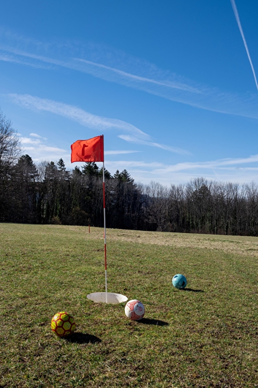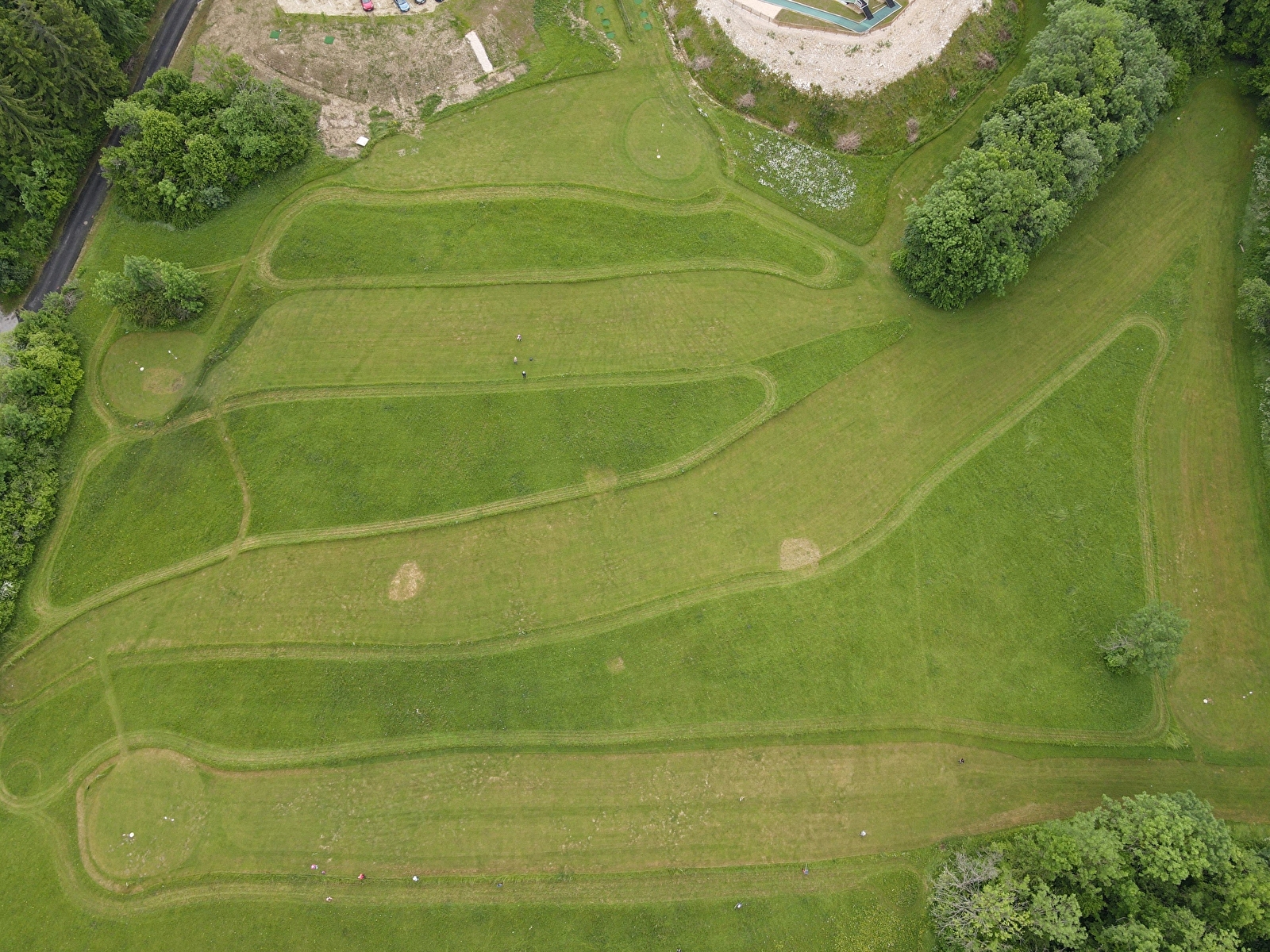 Le parcours de footgolf, insolite et exigeant, est dessiné sur un terrain bucolique de moyenne montagne en conservant la topologie naturelle du sol, sans arrosage ni pesticide. Sa longueur est de 1200m, les 9 aires de jeu successives ont des longueurs de 70 à 240 m. Chacune se termine par une aire de drapeau qui présente un grand trou muni d'un drapeau rouge.
