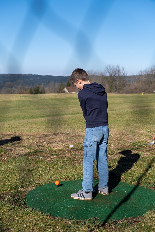 Le parcours insolite, dessiné sur un terrain bucolique de moyenne montagne, conserve la topologie naturelle du sol, sans arrosage ni pesticides. Sa longueur est de 1200m, les 9 aires de jeu successives ont des longueurs de 70 à 240 m. Chacune se termine par une aire de drapeau qui présente un trou pour le swin repéré par un drapeau blanc.