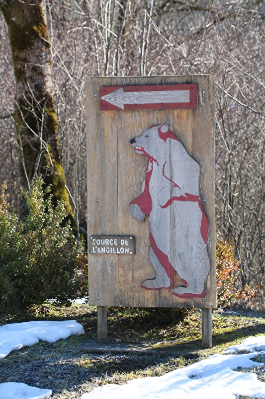 Depuis le magnifique clocher comtois du village, c’est jusqu’à sa source que vous remonterez l’Angillon, affluent de l’Ain. Au bout du chemin, dans un cirque rocheux, vous longerez une suite de petites cascades. C’est à partir d’ici que la féerie s’opère… Abandonnez la petite route pour emprunter le sentier forestier, sans oublier de jeter un coup d’œil de l’autre côté de la rivière, où une petite grotte est occupée par… deux ours !