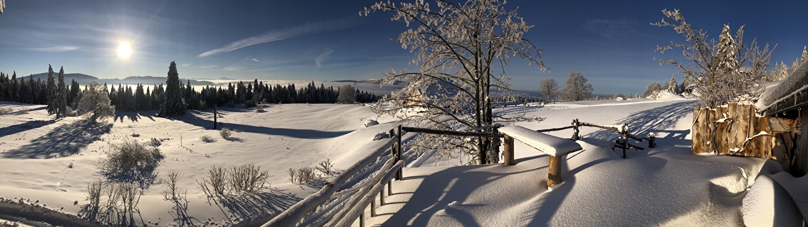 Là-haut sur montagne du Jura franco-suisse, perchée au milieu des arbres sur le site du chalet d’alpage La Champagne, la loge en bois vous invite à vous ressourcer, en limitant votre empreinte carbone dans un cadre unique sur 7 ha de nature préservée pour la Biodiversité et les P.P.A.M (Plantes à Parfum Aromatiques et Médicinales)Vue superbe sur le Mont Blanc, le Mont d'Or, le Mont Tendre et le Suchet depuis les 2 terrasses dans les arbres..... Zénitude et dépaysement garantis!! pour 2 à 4 pers en gestion libre tout confort.