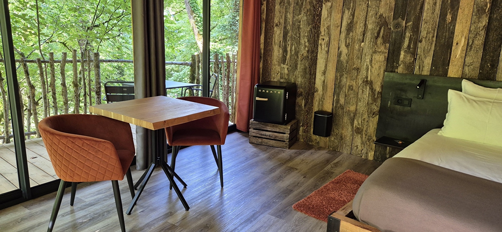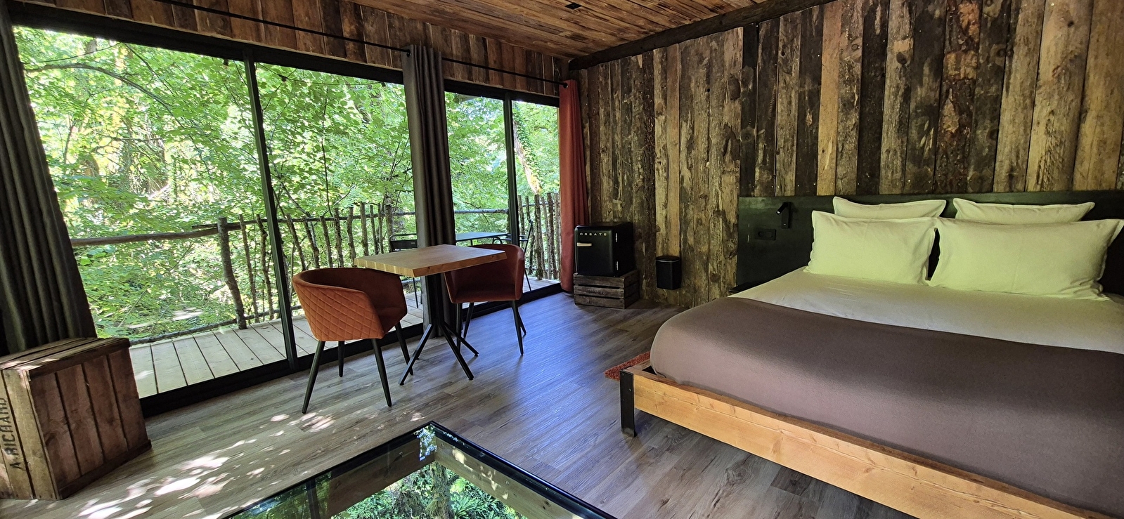 Perchés au-dessus de la source de Cramans, au cœur d'une nature luxuriante, nos lodges vous offrent une expérience unique de tranquillité et de confort. Imaginez-vous, éveillé par le doux murmure de l'eau et entouré par le chant des oiseaux, dans un cadre où le temps semble suspendu.