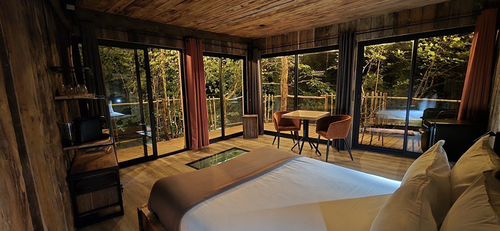Nos lodges, conçus pour se fondre harmonieusement dans leur environnement naturel, allient élégance, modernité, et authenticité. Chaque lodge a été soigneusement aménagé pour offrir un espace chaleureux et raffiné, avec des matériaux nobles qui évoquent l’esprit de la nature environnante.