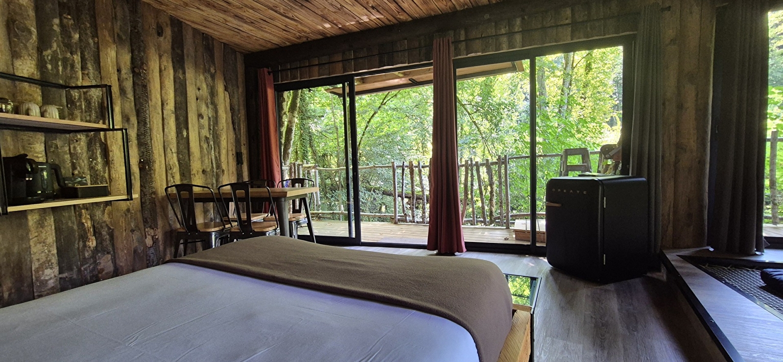 Perchés au-dessus de la source de Cramans, au cœur d'une nature luxuriante, nos lodges vous offrent une expérience unique de tranquillité et de confort. Imaginez-vous, éveillé par le doux murmure de l'eau et entouré par le chant des oiseaux, dans un cadre où le temps semble suspendu.