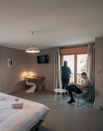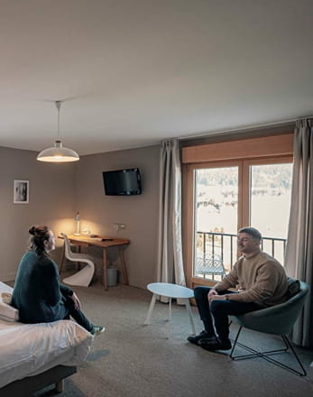 Le Domaine du Mont-Saint-Jean offre en hiver un superbe panorama enneigé sur le massif du Noirmont. Ainsi que le confort chaleureux de son hôtel***, havre de bien-être au cœur de la Station des Rousses — ce qui le désigne naturellement pour clore une journée au grand air.