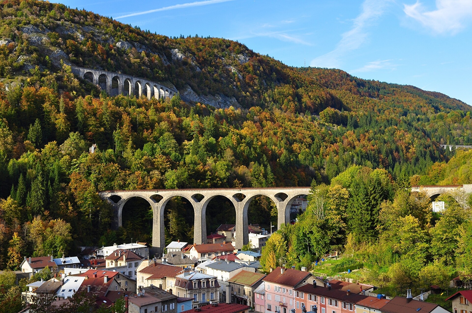 La ligne des Hirondelles dessert la vallée de Morez depuis l’arrivée du train en 1900. Cet itinéraire permet de découvrir de nombreux viaducs et tunnels ainsi que le relief du site.