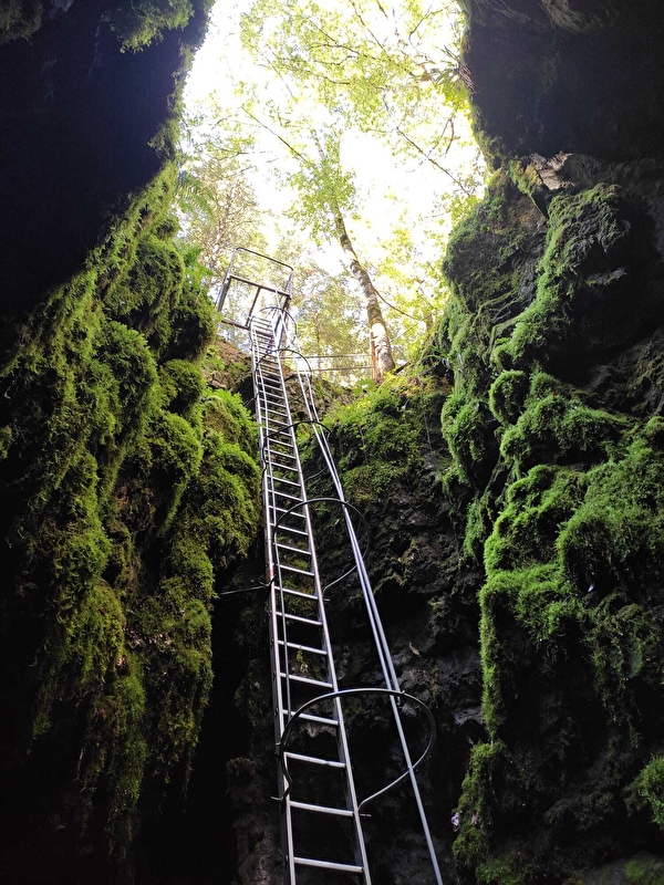 "Sur les Gîts", vue sur le Val de Foncine,. Le Creux Maldru : gouffre de 28 mètres de circonférence en forme d’entonnoir (seulement 6 mètres dans le fond).