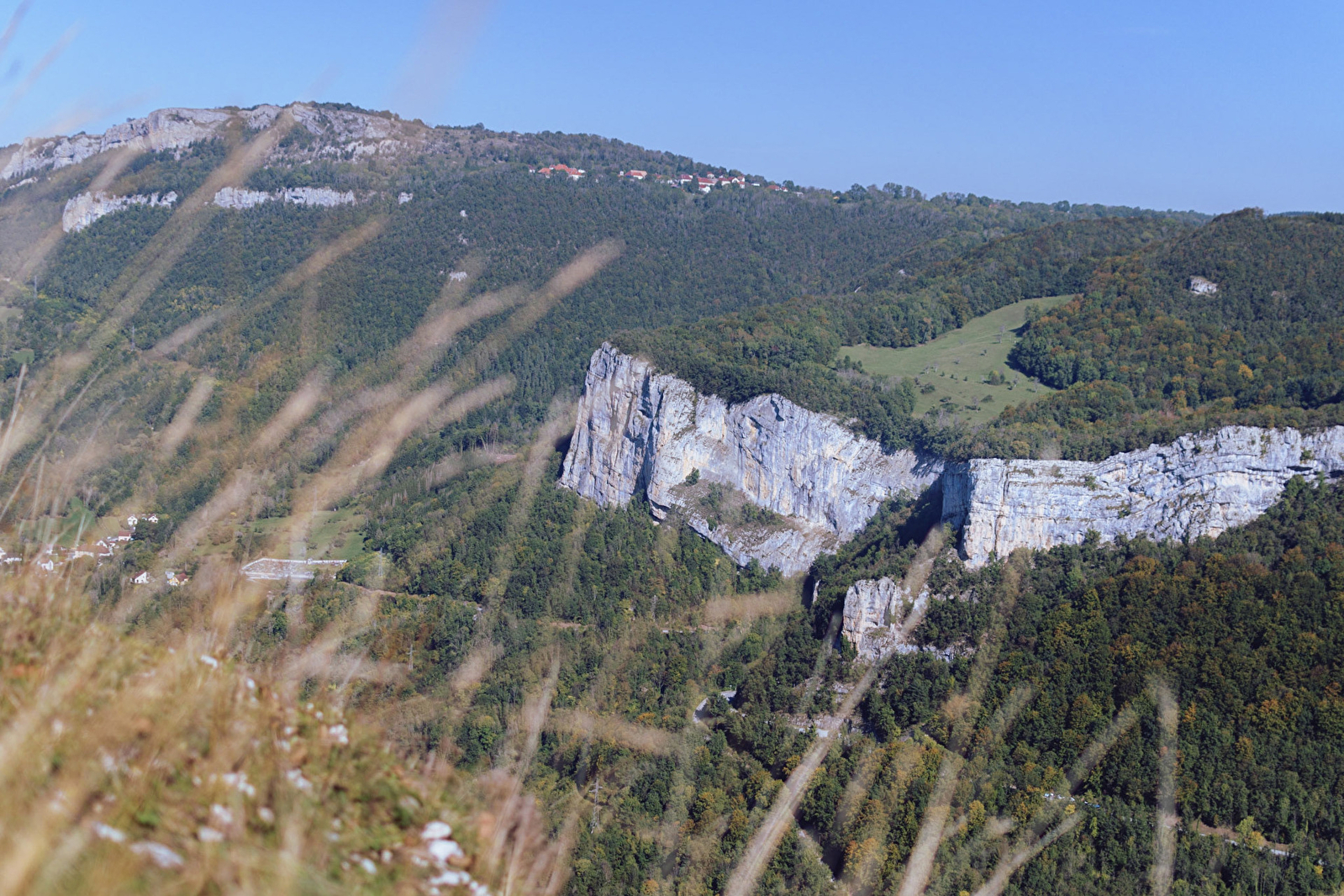 Au départ d'Évillers, l'itinéraire monte dans la forêt pour franchir la côte puis redescend par le Bois de Champodry. Après quelques centaines de mètres sur la route en direction de Longeville, le sentier entre dans les pâtures et rejoint la bordure du plateau. Le chemin se poursuit ainsi en balcon durant plusieurs kilomètres offrant une vue remarquable sur la vallée notamment aux Rochers du Capucin puis au belvédère du Moine de la Vallée. Le retour par la Grange Carrée emprunte des chemins forestiers avant de rejoindre les pâtures au nord-est d'Évillers.