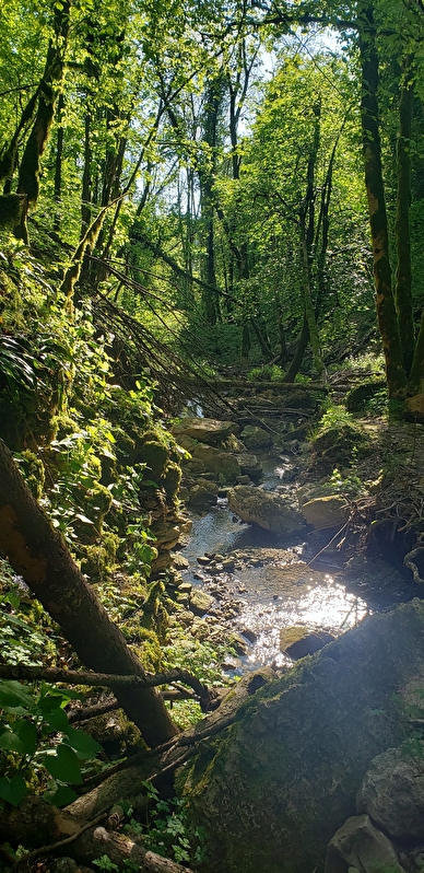 Une randonnée presque toute en sous-bois, idéale pour les périodes de printemps et d'automne. Un sentier parfait pour profiter de la fraîcheur de la forêt, des fleurs sauvages le long du chemin et surtout d'une promenade au fil de l'eau. Belle lumière, jolis paysages en percé dans les frondaisons et surtout une tranquillité parfaite. Seuls les oiseaux et la brise vous accompagneront jusqu'aux cuves et leur cascade...